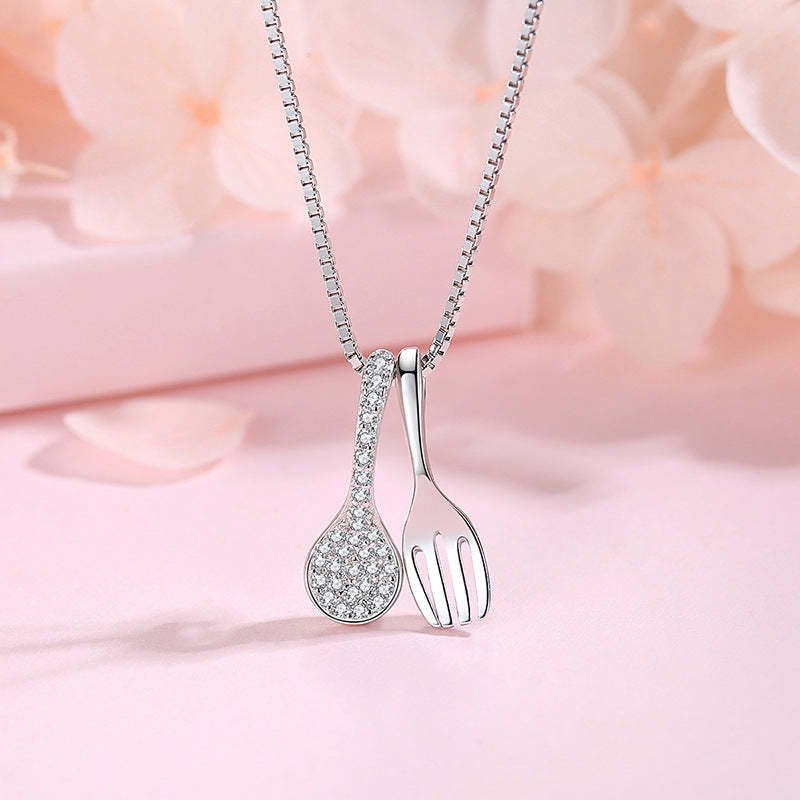 925 Silver Small Fork And Spoon Full Of Diamond Clavicle Chain