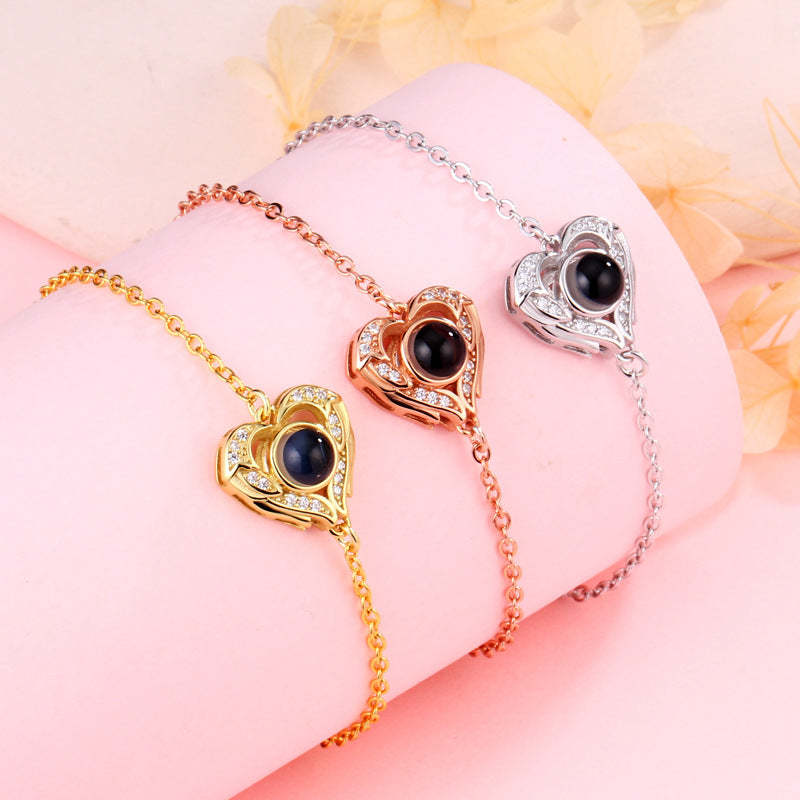 I Love You 100 Languages ??Bracelets: These personalized picture bracelets represent endless love, friendship, and everlasting love for women. Illuminate the pendant with lights to map out the 100 languages ??I love you. It's a great surprise for your loved ones.