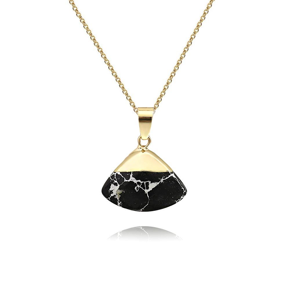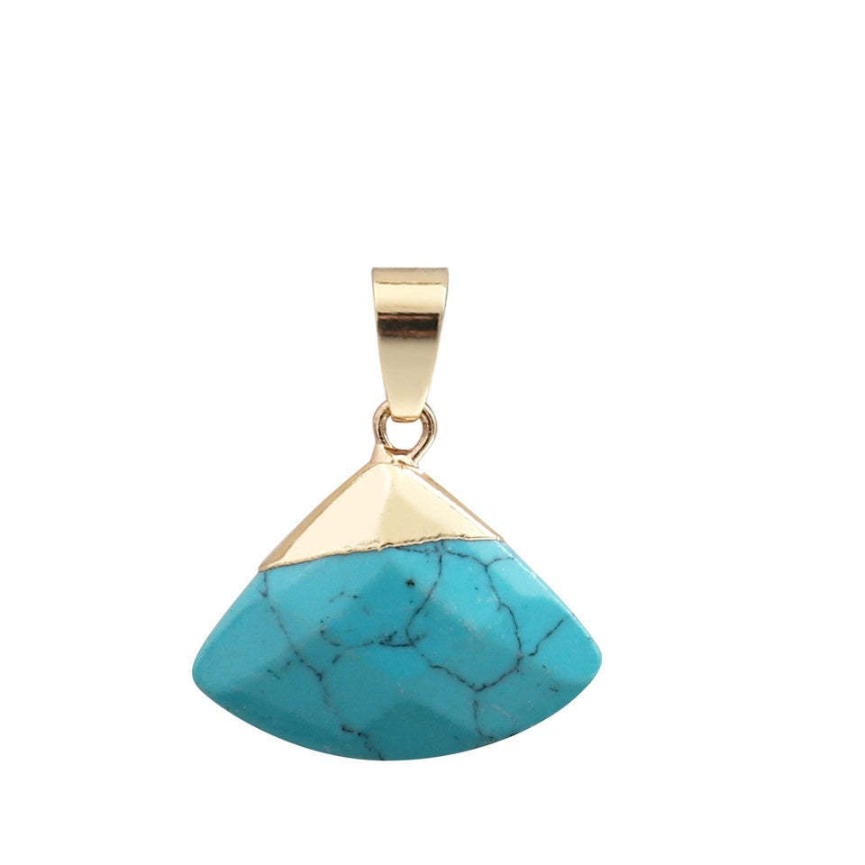 Copper Natural Stone Irregular Sector Pendant Necklace