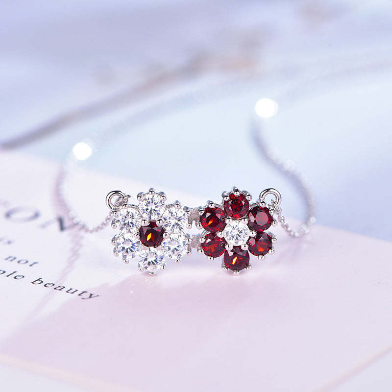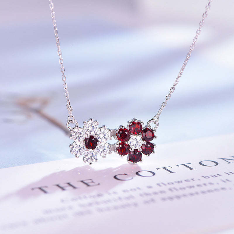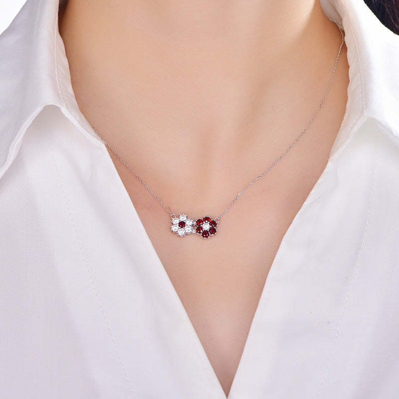 925 Silver Garnet Sunflower Necklace