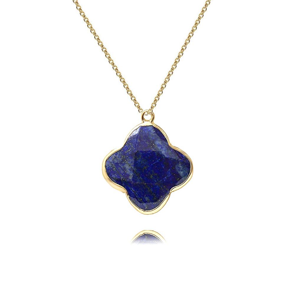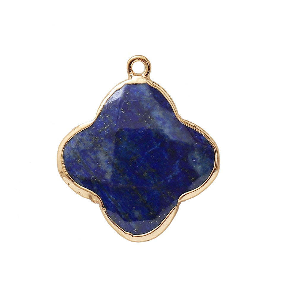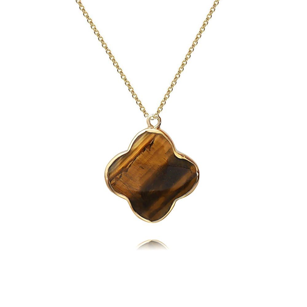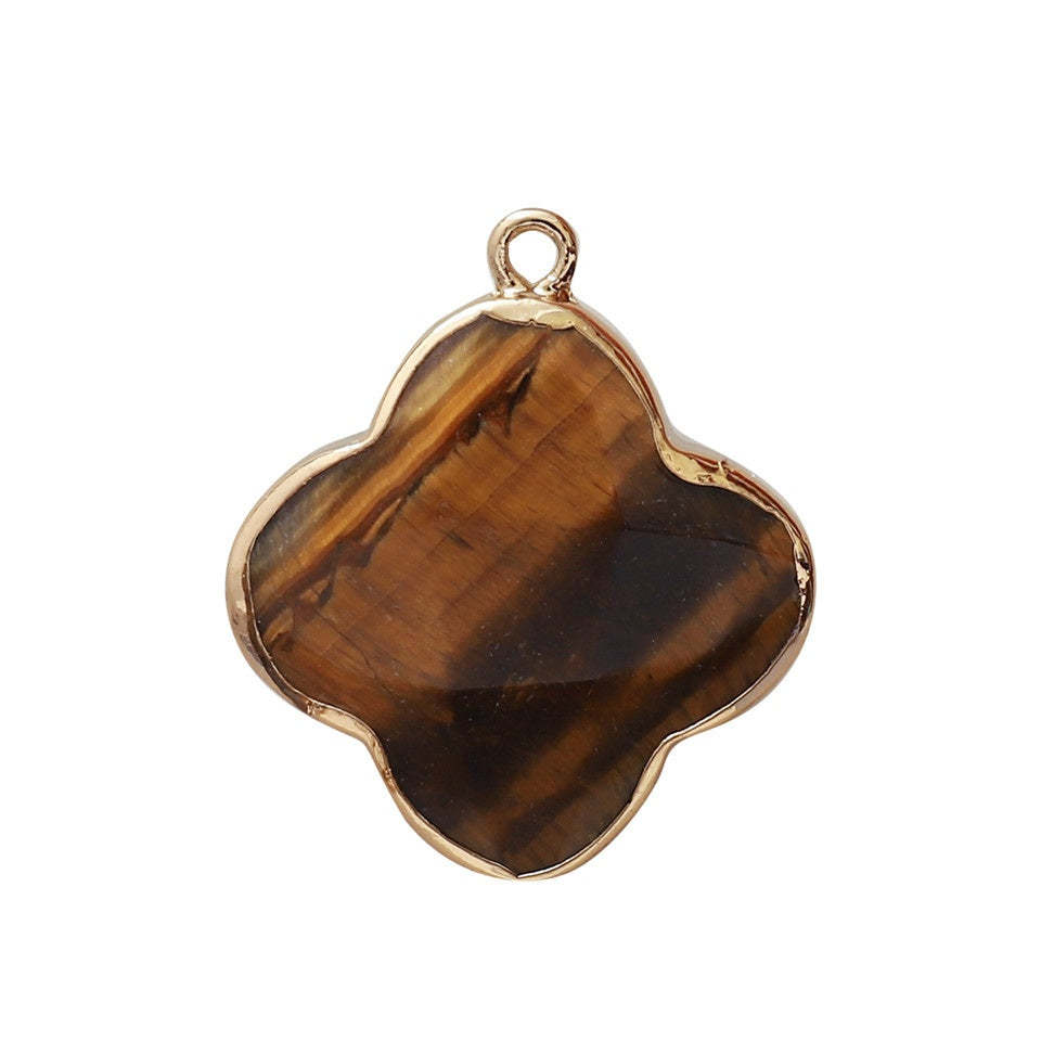 Copper Natural Stone Lucky Four Leaf Clover Pendant Necklace