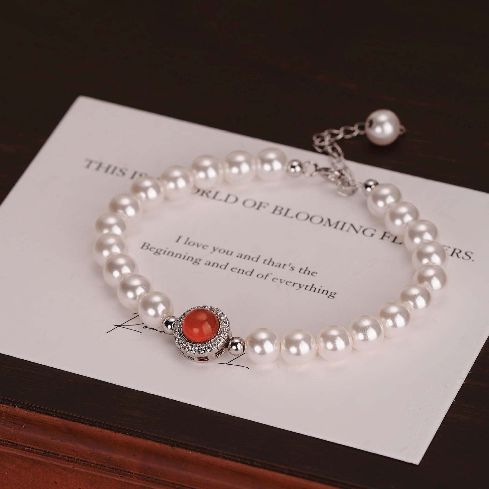 Add a pop of color to your wrist with our 925 Silver Red Agate Freshwater Pearl Bracelet. Handcrafted with high-quality materials, this bracelet exudes elegance and sophistication. Perfect for any occasion, it's a must-have accessory for any jewelry lover. Shine on! -Step up your style game with this stunning bracelet that adds a splash of color to your wrist. (Add a touch of playfulness with a pun or quirky word play, such as "wrist party" or "rock your wrist.") -Made from top-notch materials, this bracelet is crafted to perfection, making it the perfect balance of elegance and sophistication. (Use humorous language to describe the quality of the product, such as "fancy schmancy" or "oh-so-fancy.") -It's the ultimate accessory for any jewelry lover, whether you're dressing up for a special occasion or just looking to add some glam to your everyday look. (Use humor or slang to describe the versatility of the bracelet, such as "bling bling for any occasion" or "a must-have arm candy for every fashionista.") Don't wait, let your wrist shine with this bracelet today!