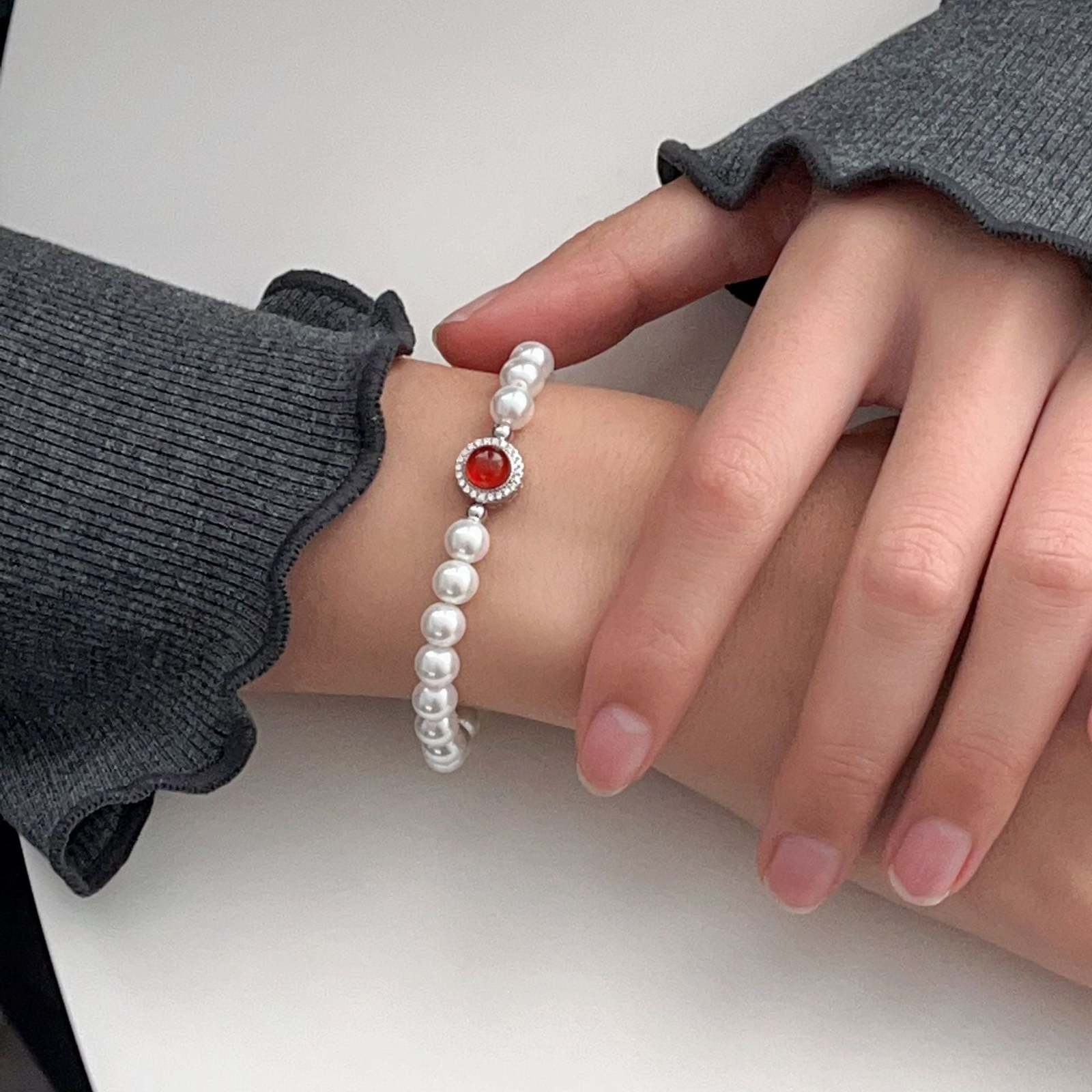 925 Silver Red Agate Freshwater Pearl Bracelet
