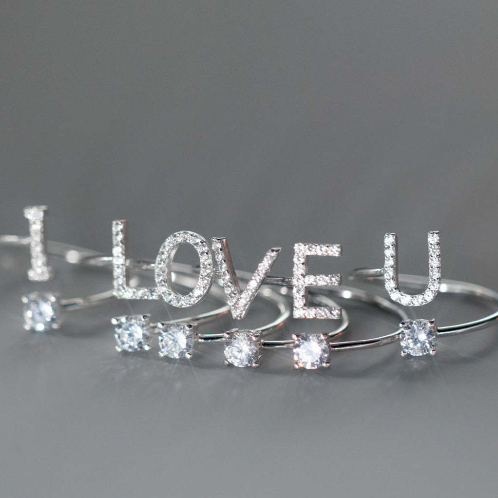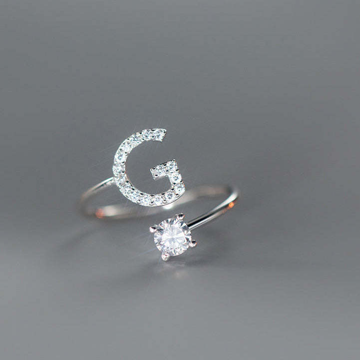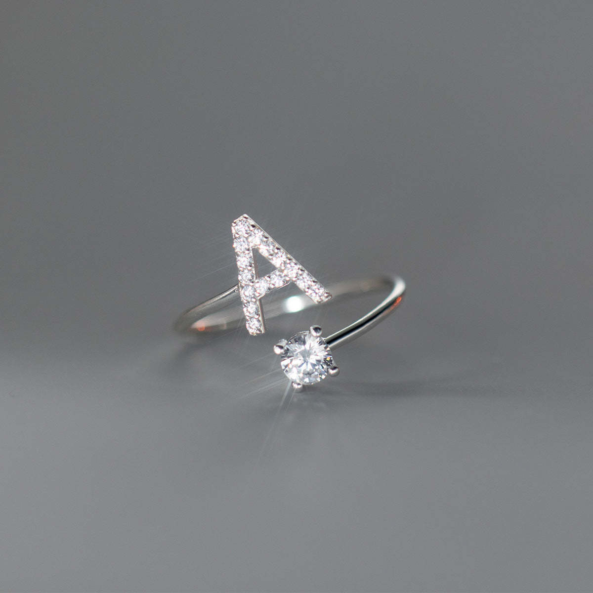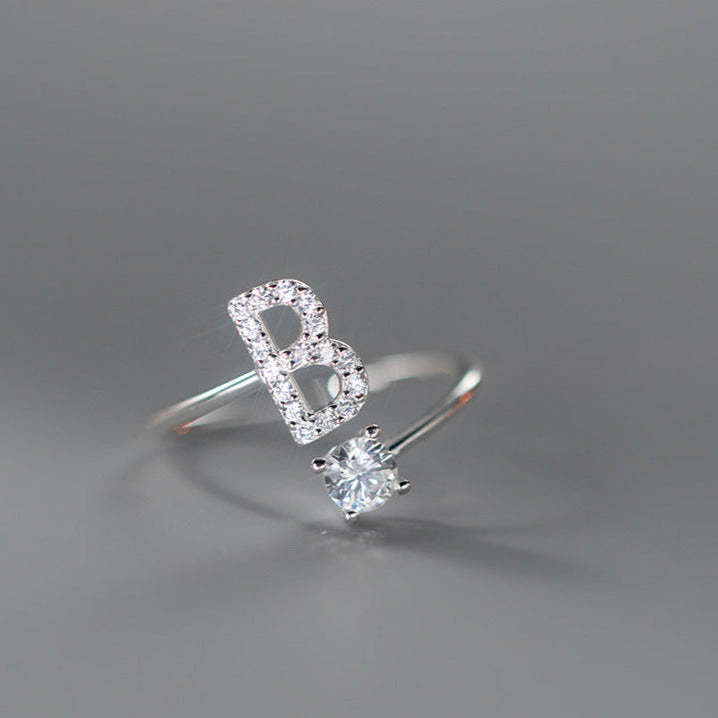 "Say "toi et moi" to this S925 Silver 26 Letters Ring, featuring every letter of the alphabet. With this stylish piece, you can spell out your love and show off your playful side. Made of high-quality silver, this ring is not only fashionable but also durable. Love never looked so good!"