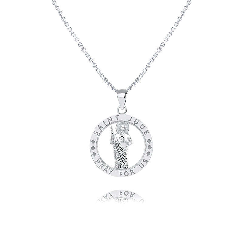 Sterling Silver Saint Jude Pray for Us Round Charm Pendant Necklace