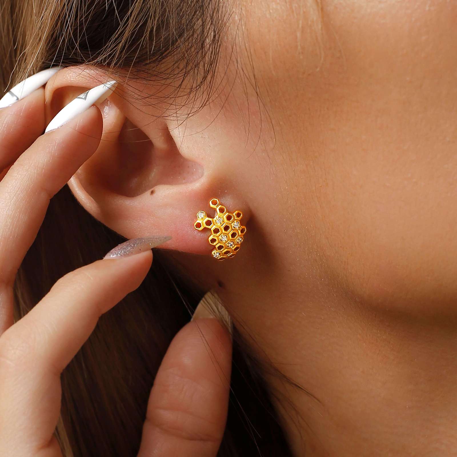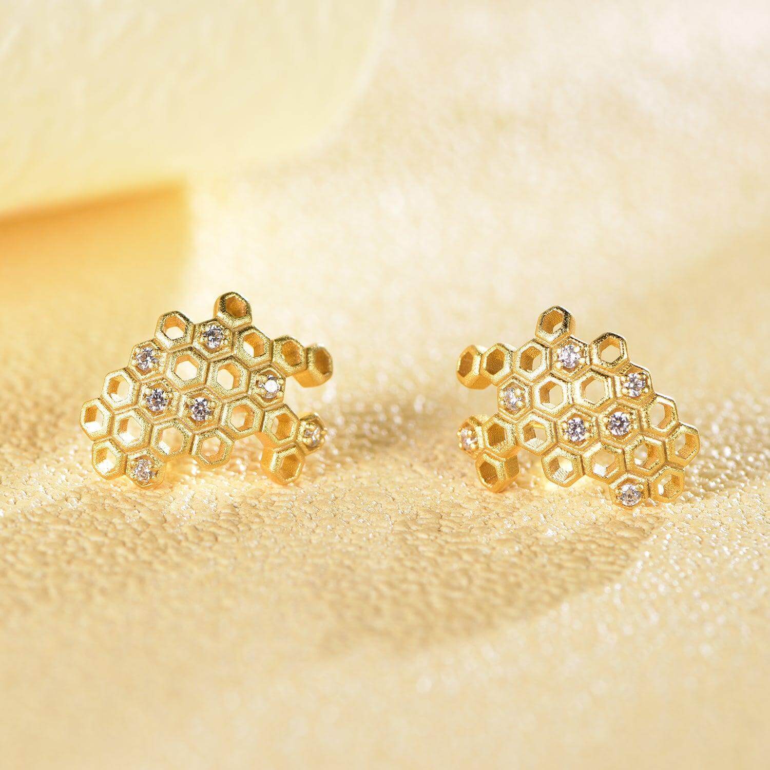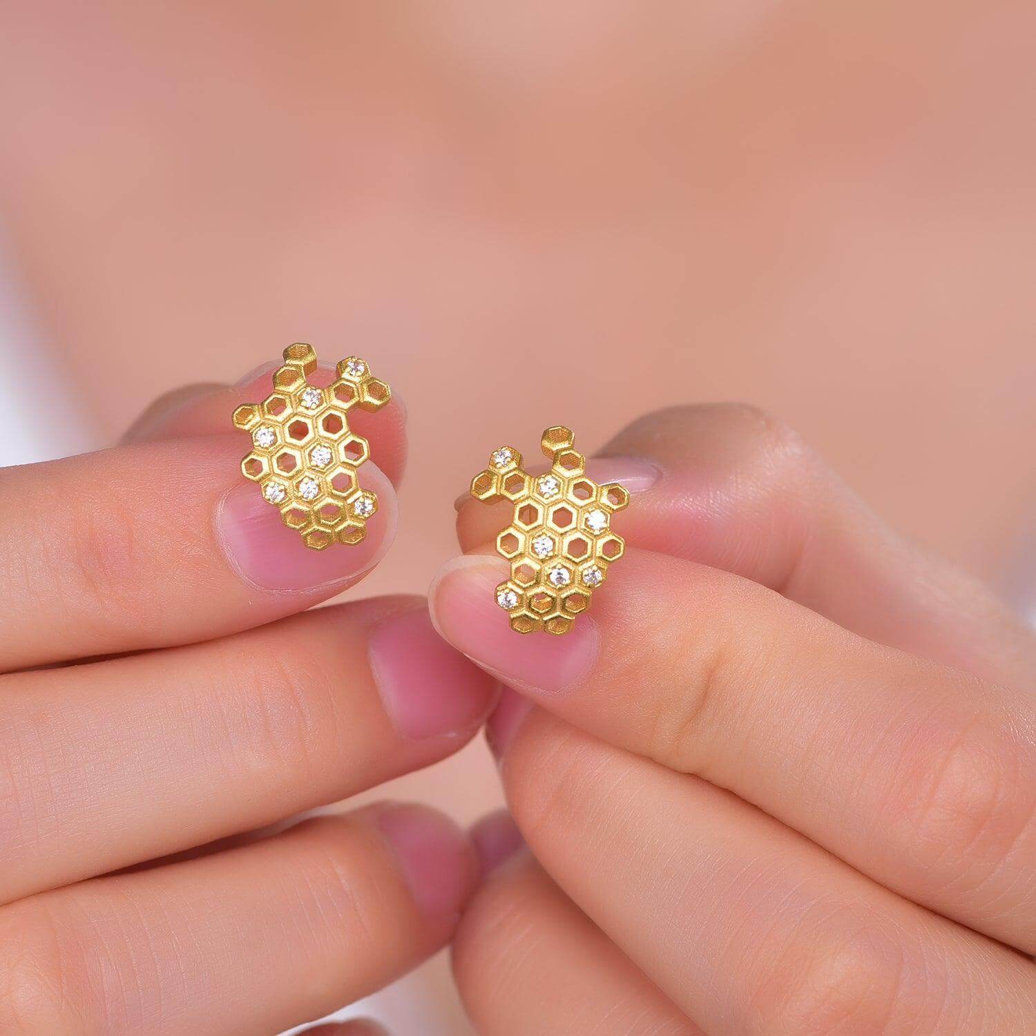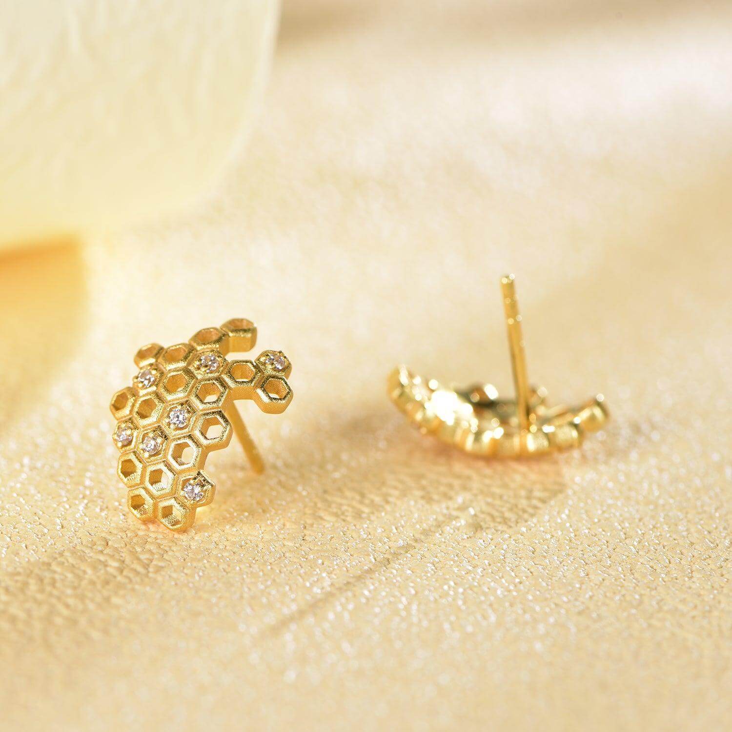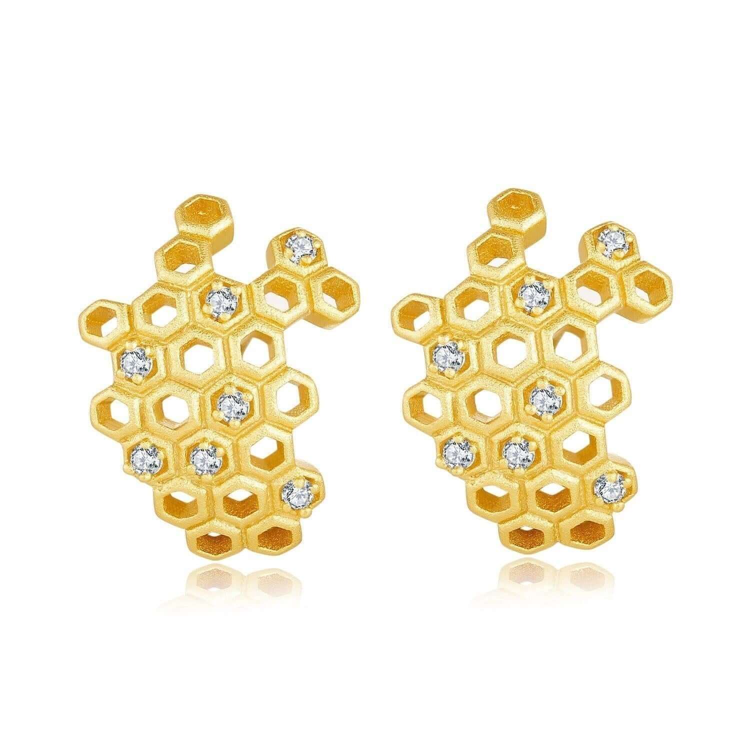 Gold Honeycomb With Honey Earrings LifeWithMaK’s Honeycomb Bee Kind Jewelry Coll