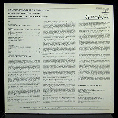 Howard Hanson Barber Sessions Ginastera vinyl record [Vinyl] Howard Hanson