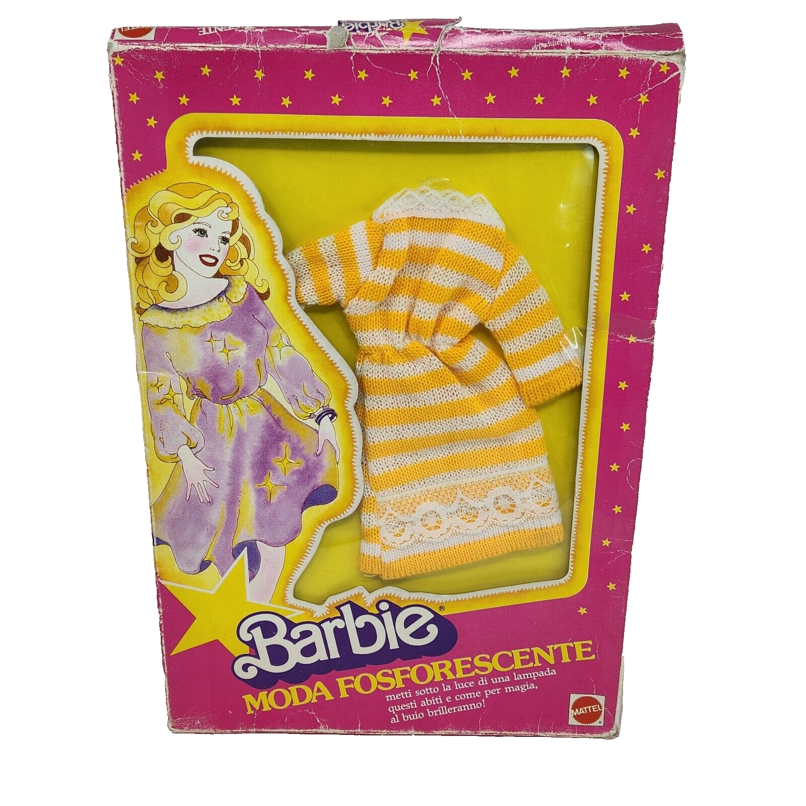 VINTAGE MATTEL BARBIE MODA FOSFORESCENTE DOLL CLOTHING IN ORIGINAL BOX ITALY