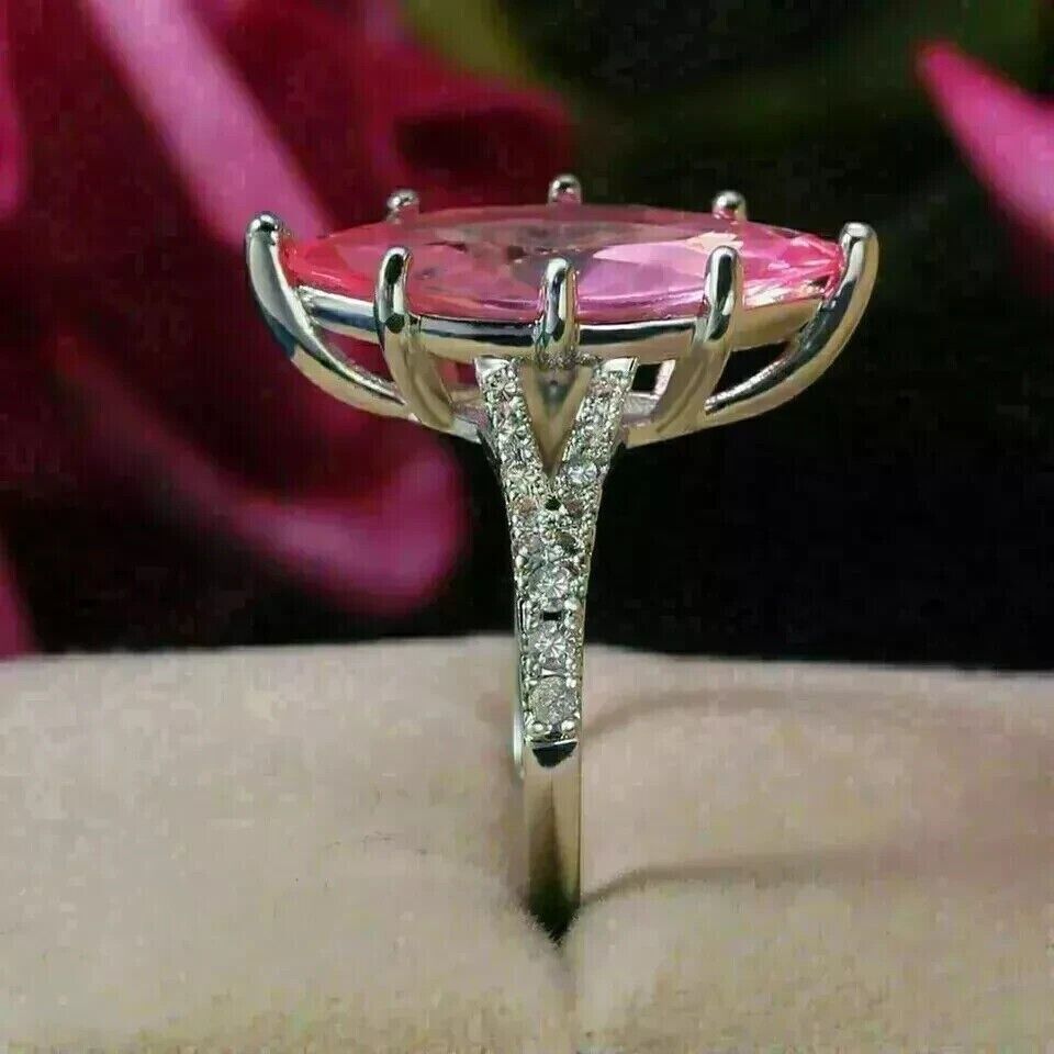 2Ct Marquise Cut Lab Created Pink Sapphire Wedding Ring 14K White Gold Plated
