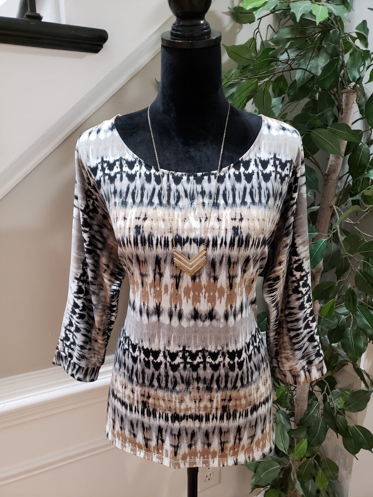 Cato Women's Multicolor Polyester Round Neck Long Sleeve Top Blouse Size Large.