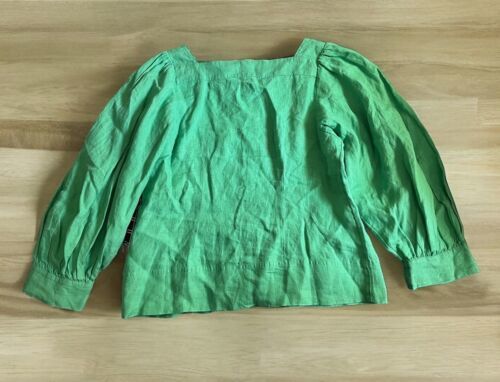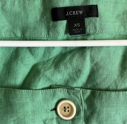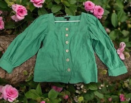 J Crew Women's Size XS Green Button Down Shirt Top Peasant Blouse LSleeve Linen