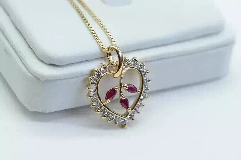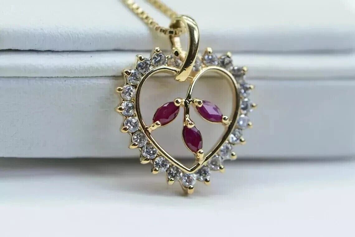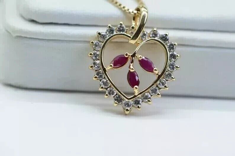 2Ct Marquise Cut Lab Created Ruby Heart Women's Pendant 14K Yellow Gold Plated