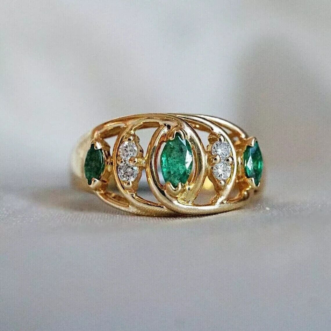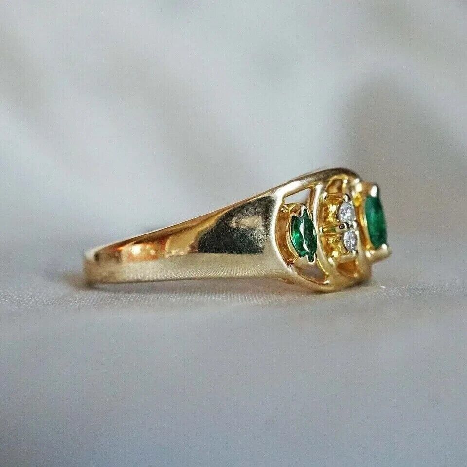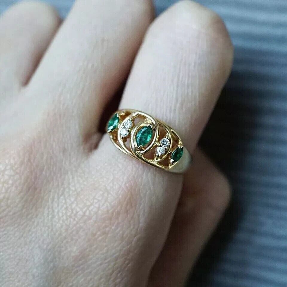 2Ct Marquise Lab Created Emerald Women's Engagement Ring 14K Yellow Gold Plated