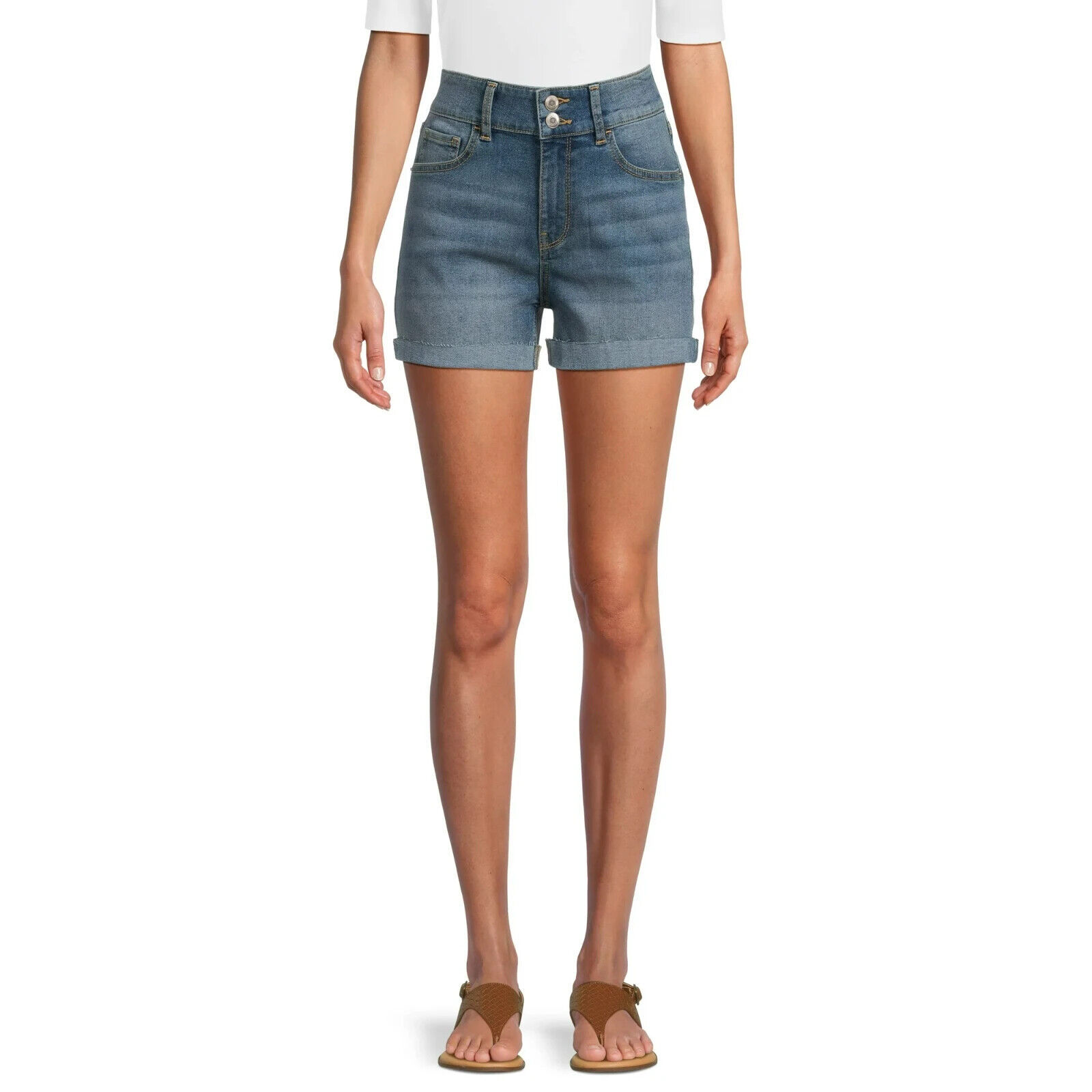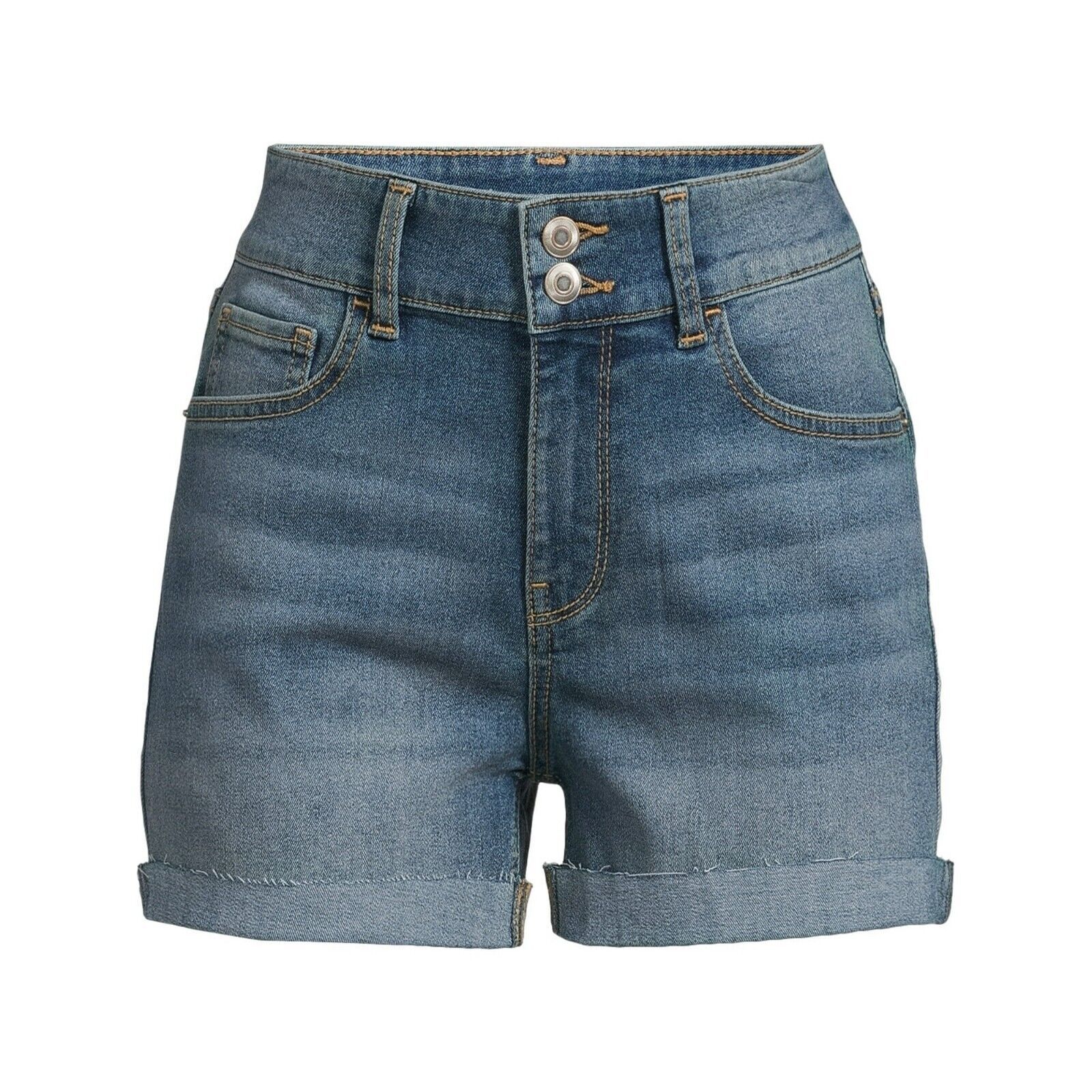 No Boundaries Midrise Double Button Shorts, Medium Wash Size 11