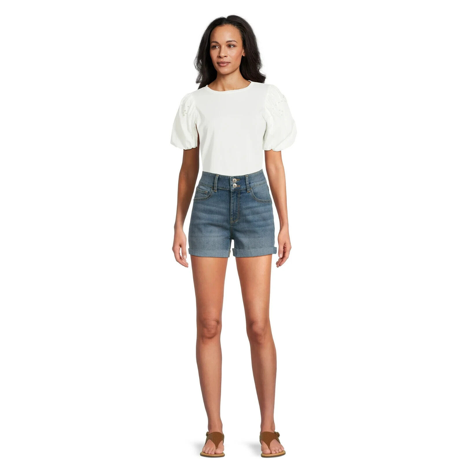 A sunny day and denim shorts?perfect together! Get into the groove with No Boundaries? Double Button Shorts. Crafted in a comfy stretch denim, with a curve-hugging fit and no-gap waistband, these on-point shorts have timeless appeal with five-pocket styling and rolled cuffs. Slip them on with a tee or tank and sandals and your casual uniform is complete.