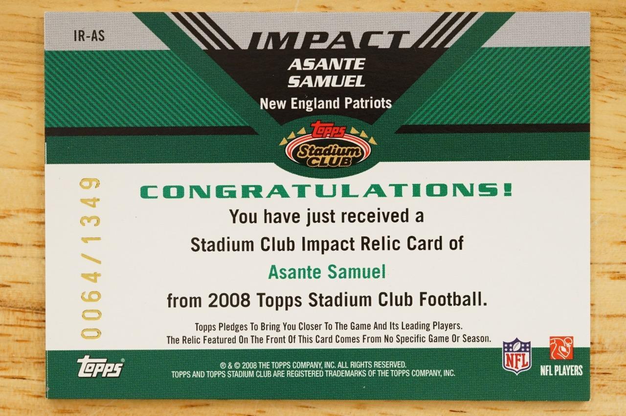 2008 Topps Stadium Club Impact Jersey Relic 64/1349 Asante Samuel IR-AS Patriots