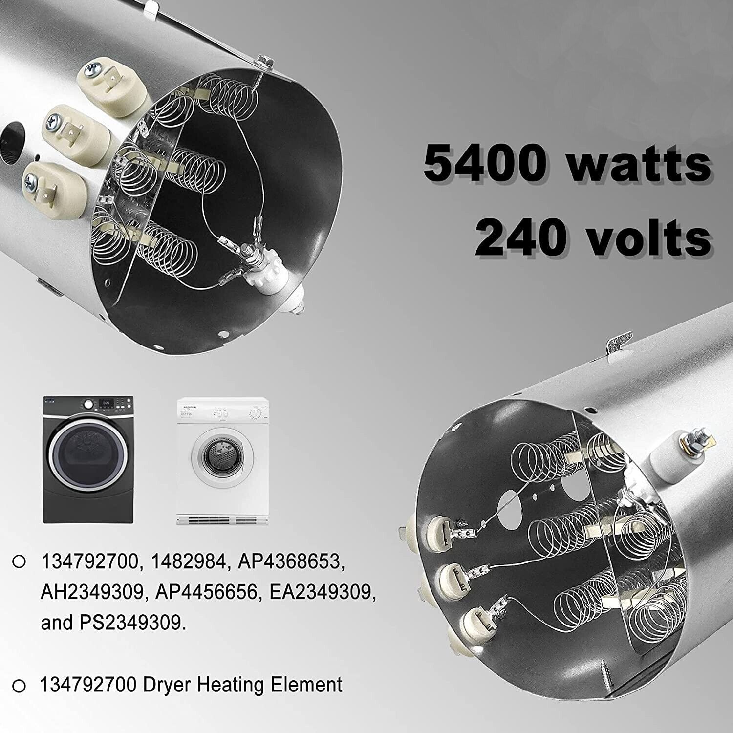 Premium Quality: Dryer heating element replacement parts are made by durable high quality material and well-tested by the manufacturer (Guaranteed to Exceed OEM Requirements). Rated at 5500 Watts 240 Volts 3 coil element with housing. Easy to install, saves time and money ?Suitable fit for most Electrolux manufactured dryer models: Cro-sley Electrolux Frigi-daire Ken-more Gib-son, Kelvi-nator etc dryers
