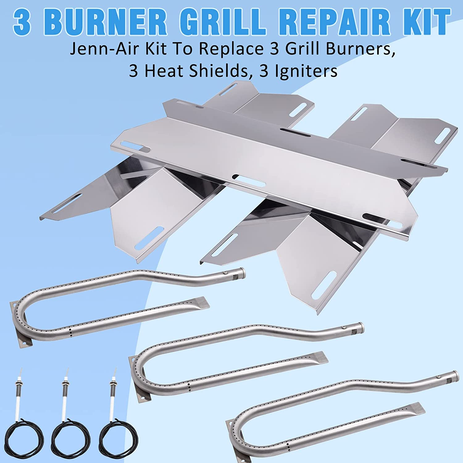 ?Grill Repair Kit Include? This jenn-air grill replacement parts 720-0336 kit to replace 3pcs grill burners, 3pcs heat shields and 3pcs igniters