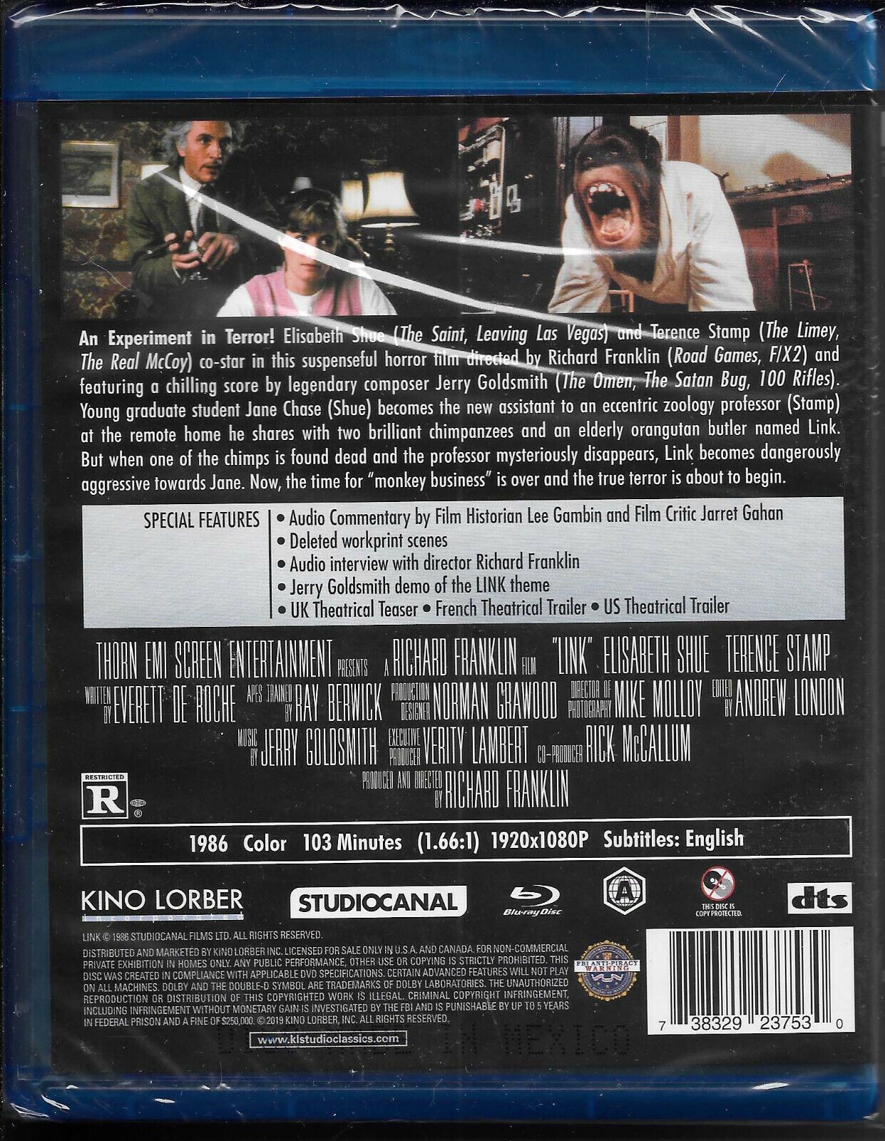 LINK - 1986 Ape Horror Film, Elisabeth Shue, NEW SPECIAL EDITION BLU RAY