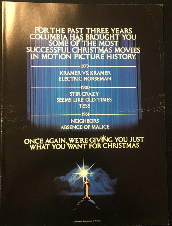 Columbia Pictures vintage 11" x 15" Variety insert (1982) The Toy Tootsie Gandhi