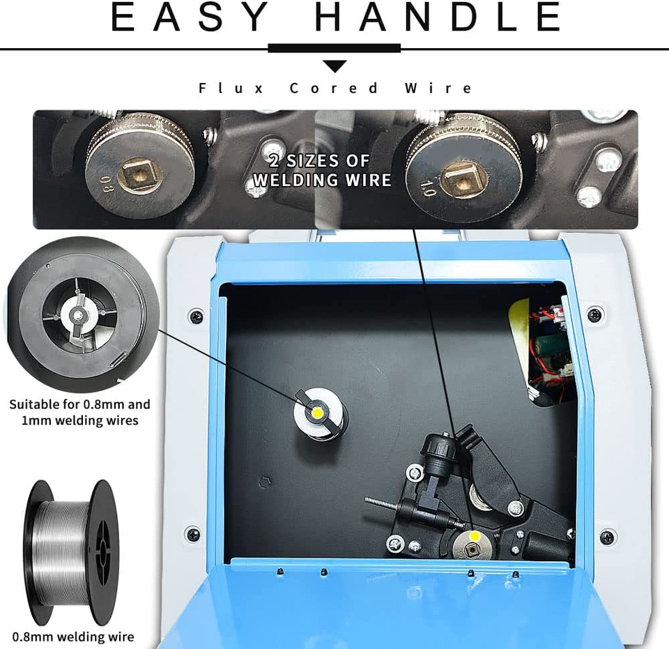welder come with a safety feature where the welder is automatically turned off when it it too hot or the voltage and current exceed their range. This flux core welder will keep you and your welder safe. There are fans helping to cooling the welder when working.