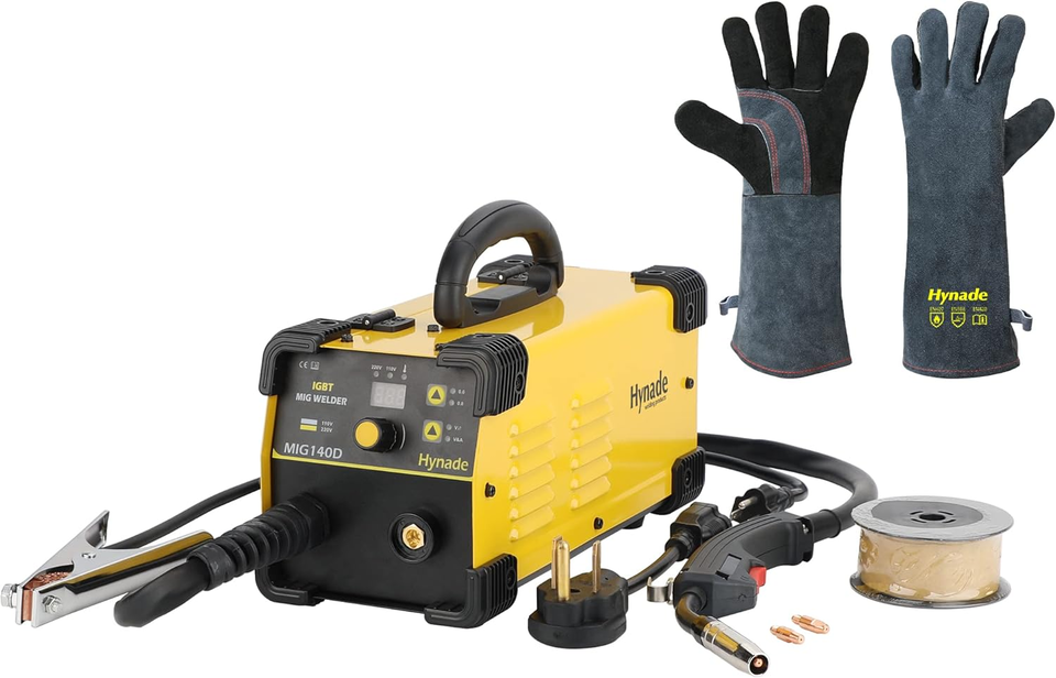 MIG140D Mig Welder, Dual Voltage 110/220V Gasless Flux Wire Welding Machine and Welding Gloves 16 Inches