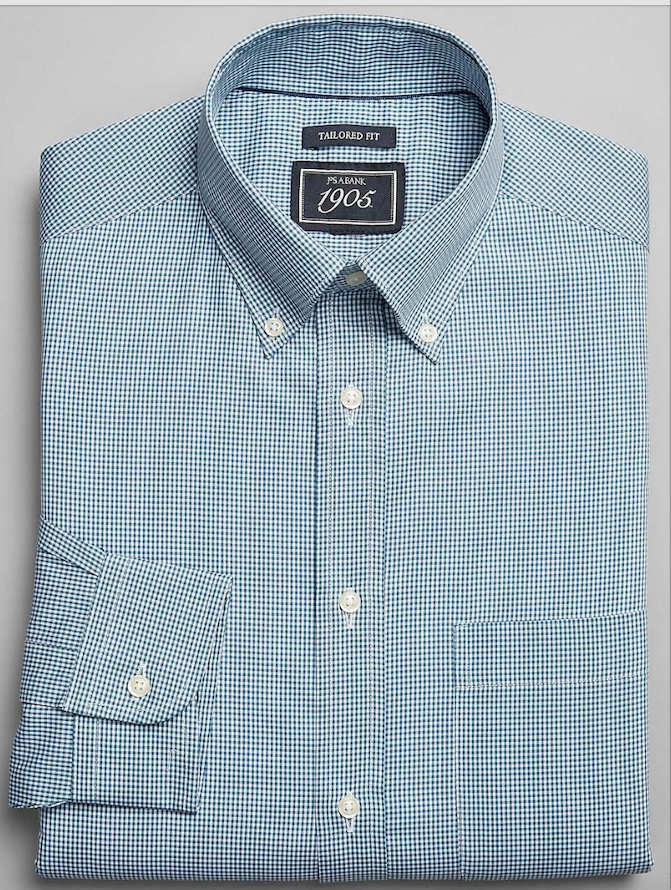 We love the versatility of this dress shirt from the 1905 Navy Collection. Wear unbuttoned at the collar for a more casual look, or dress it up with a tie. Tailored Fit. Button-down collar and barrel cuff. 70% Cotton 30% Recycled Polyester. Machine washable. Imported. Cufflinks not included.
