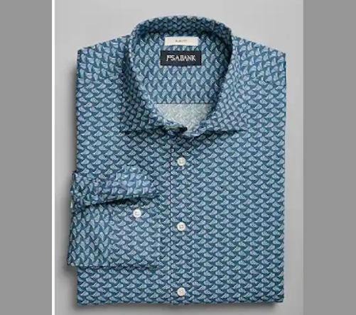 A fun and fashionable pattern resembling brushstrokes brings visual interest and undeniable style to this sportshirt from Jos. A. Bank. Slim Fit. Spread collar, barrel cuff. 100% cotton. Machine washable. Imported.
