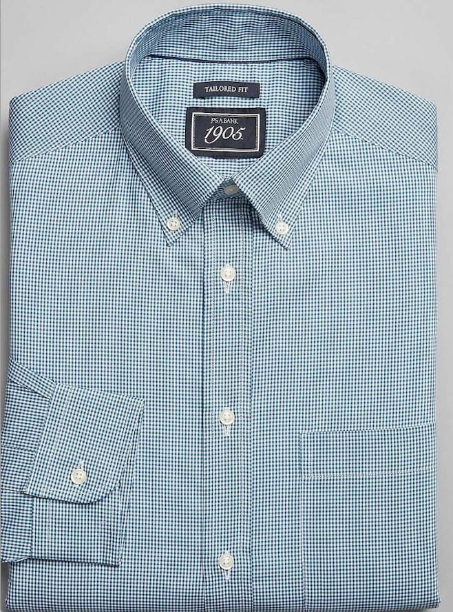 We love the versatility of this dress shirt from the 1905 Navy Collection. Wear unbuttoned at the collar for a more casual look, or dress it up with a tie. Tailored Fit. Button-down collar and barrel cuff. 70% Cotton 30% Recycled Polyester. Machine washable. Imported. Cufflinks not included.