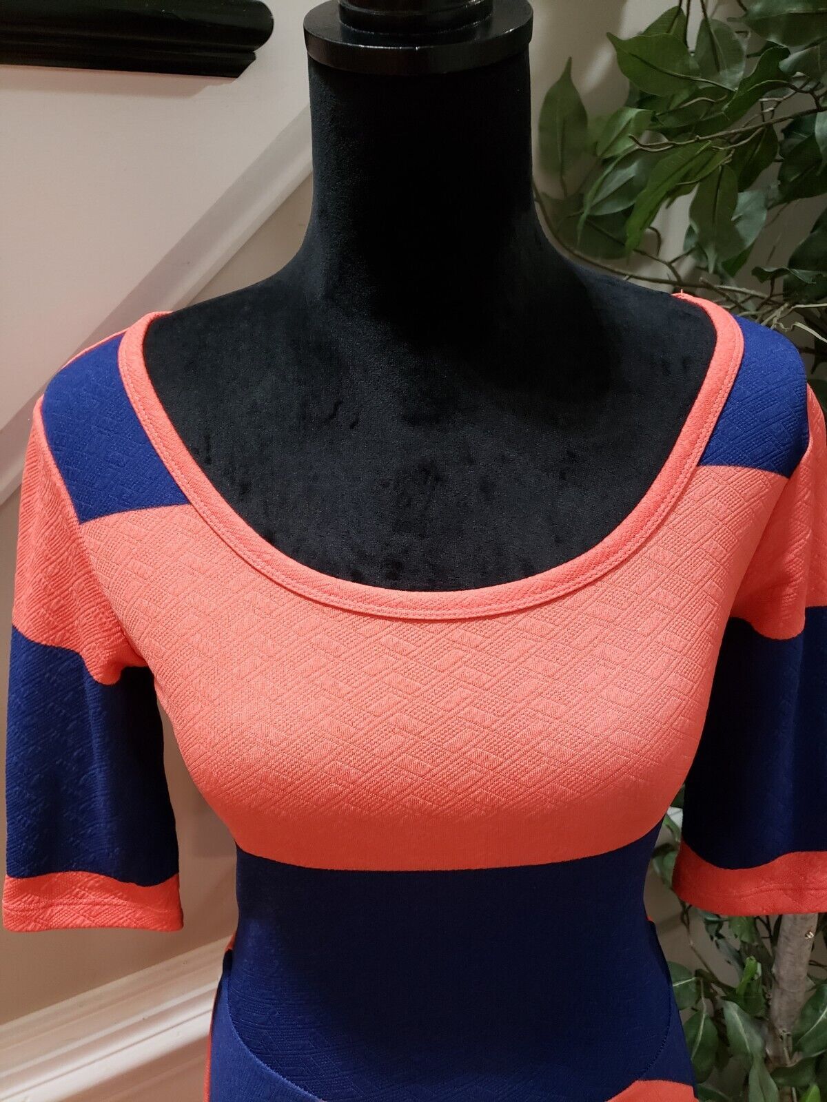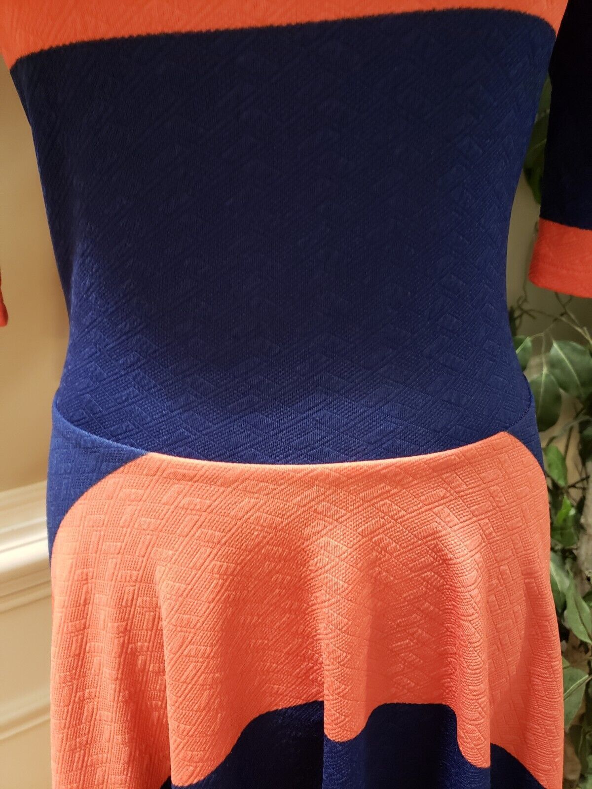 LuLaRoe Women Orange Blue Polyester Round Neck Short Sleeve Knee Length Dress S