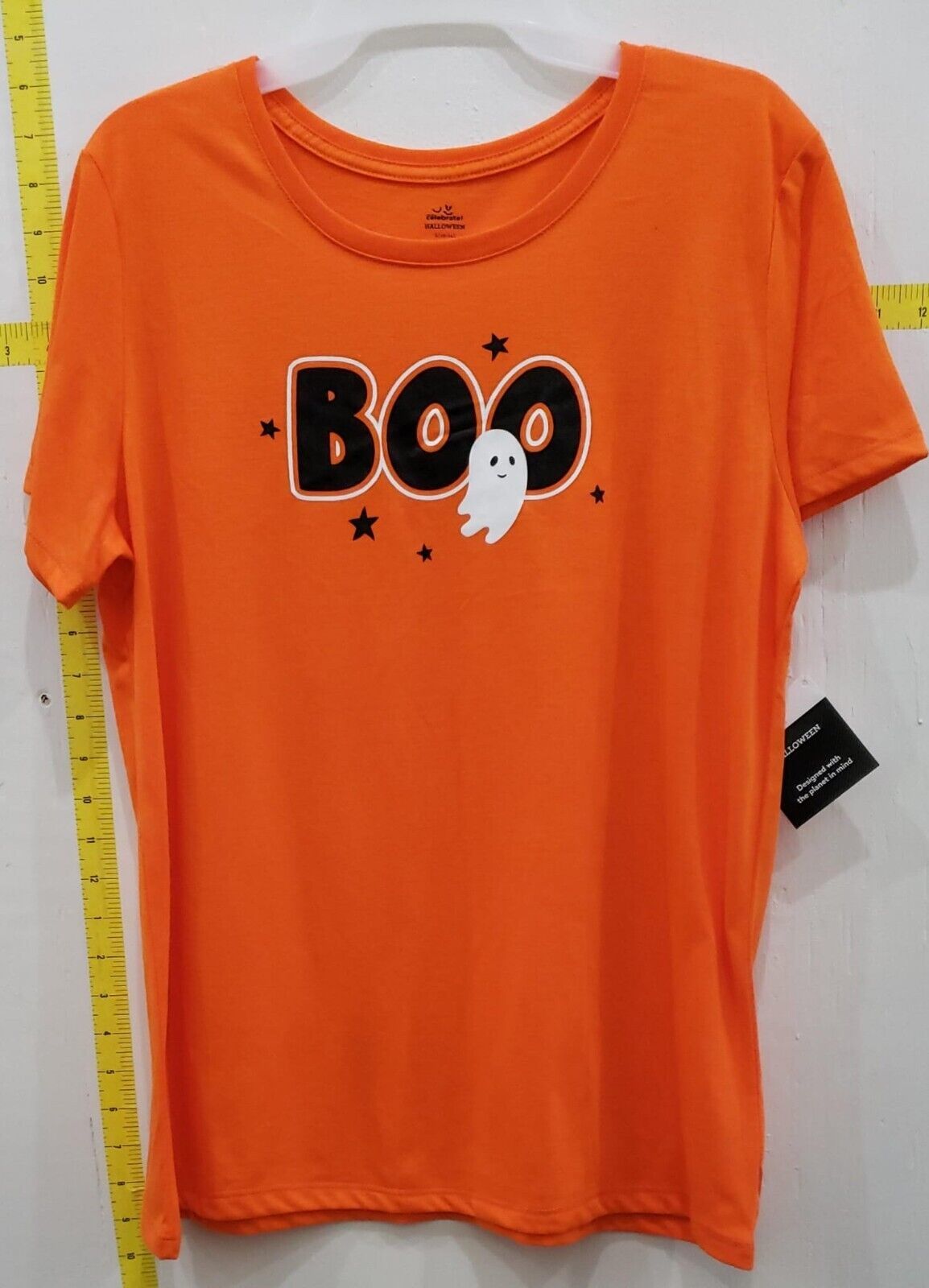 Way To Celebrate Women's "BOO" Ghost Halloween Crewneck T-Shirt Orange L (12/14)