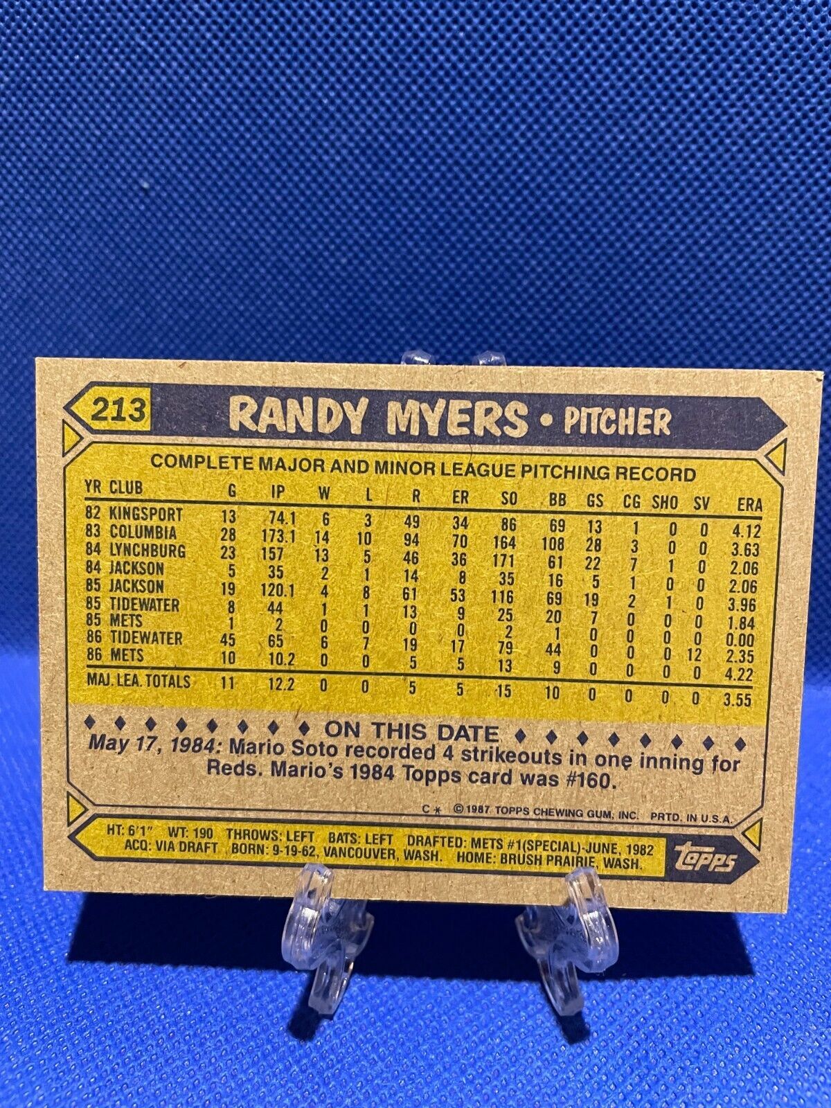 Randy Myers Rookie 213 1987 Topps Baseball Card