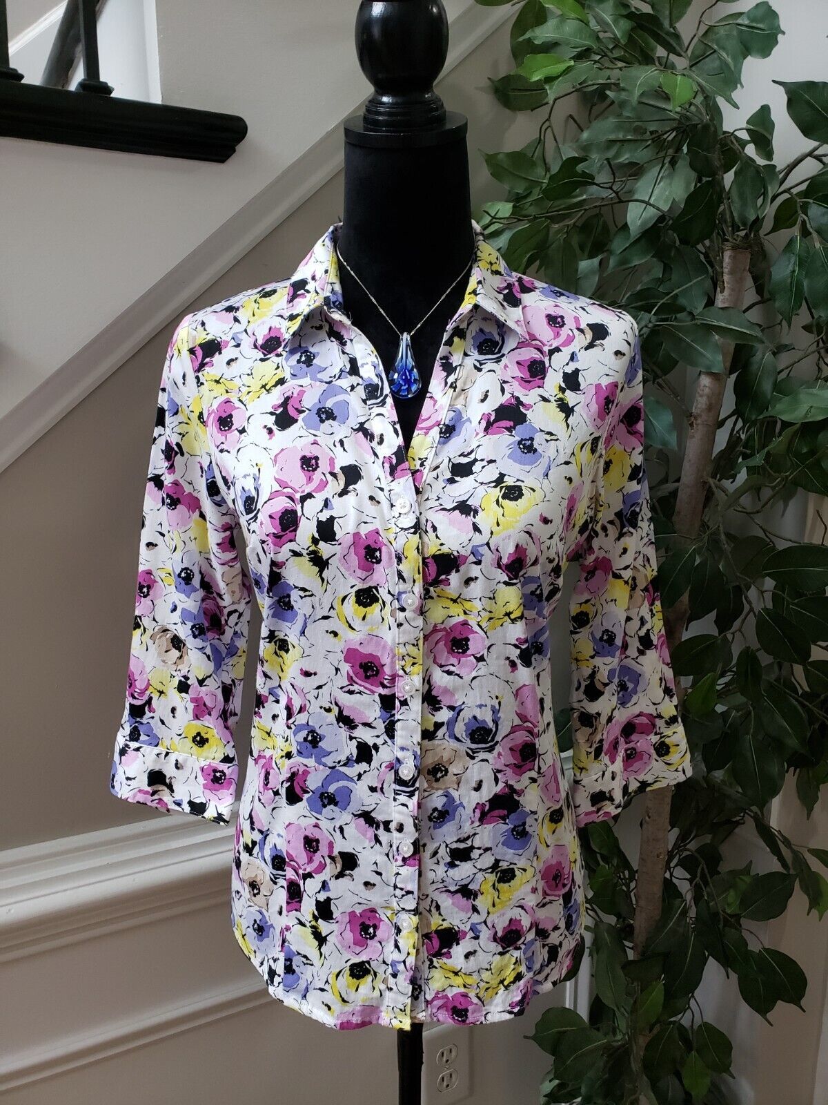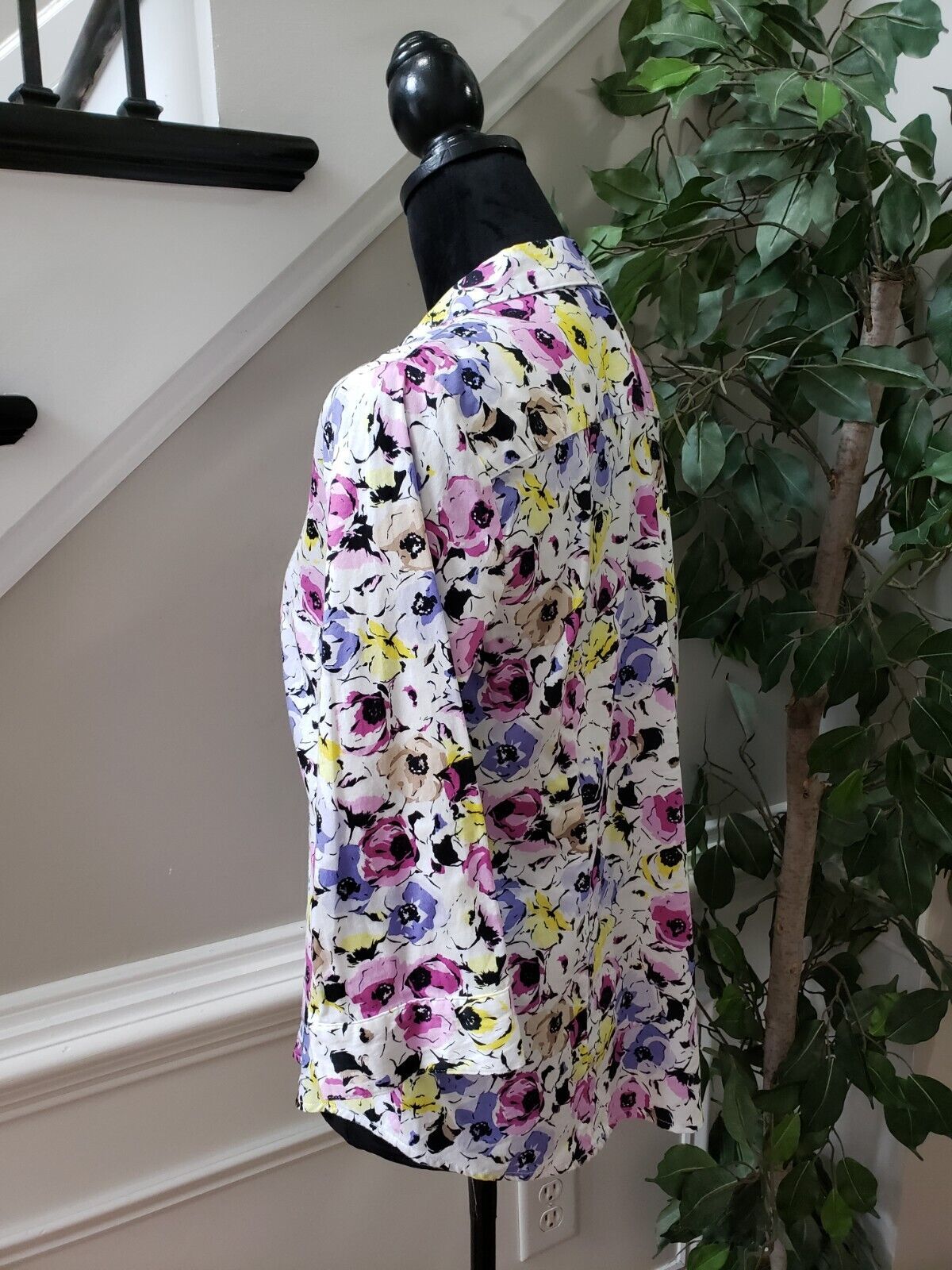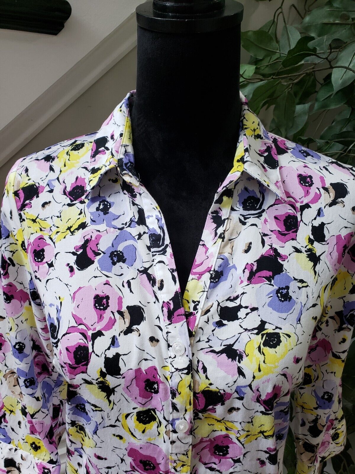 Dana Buchman Women's Multicolor Floral Collared Long Sleeve Button Down Shirt M