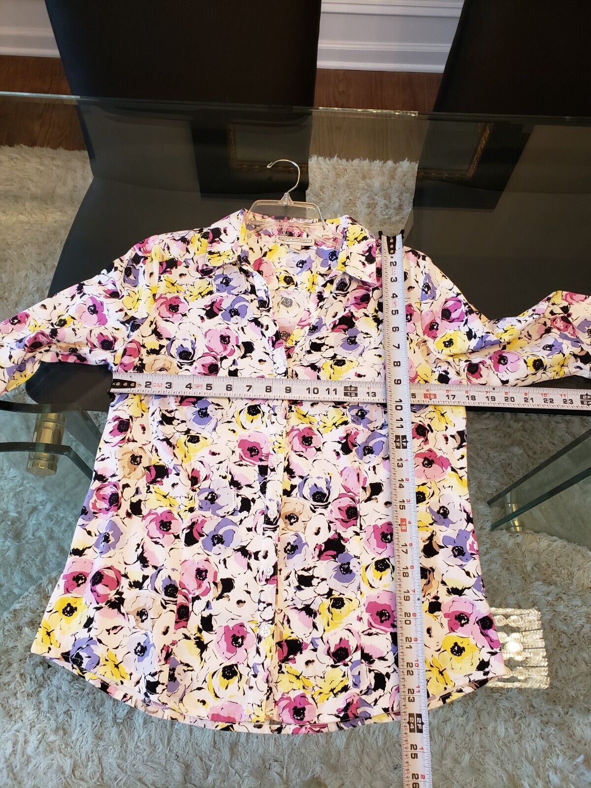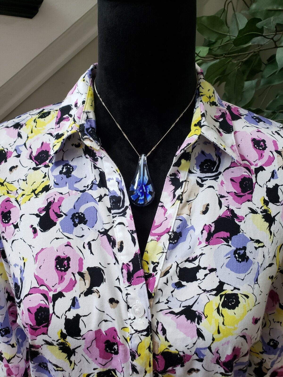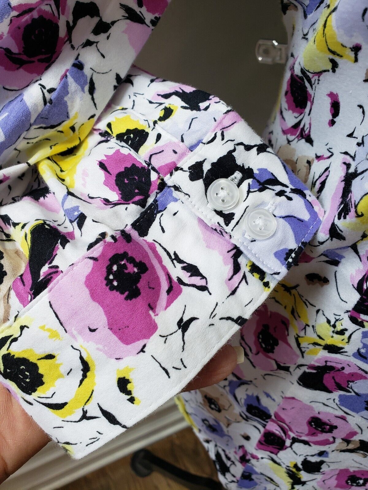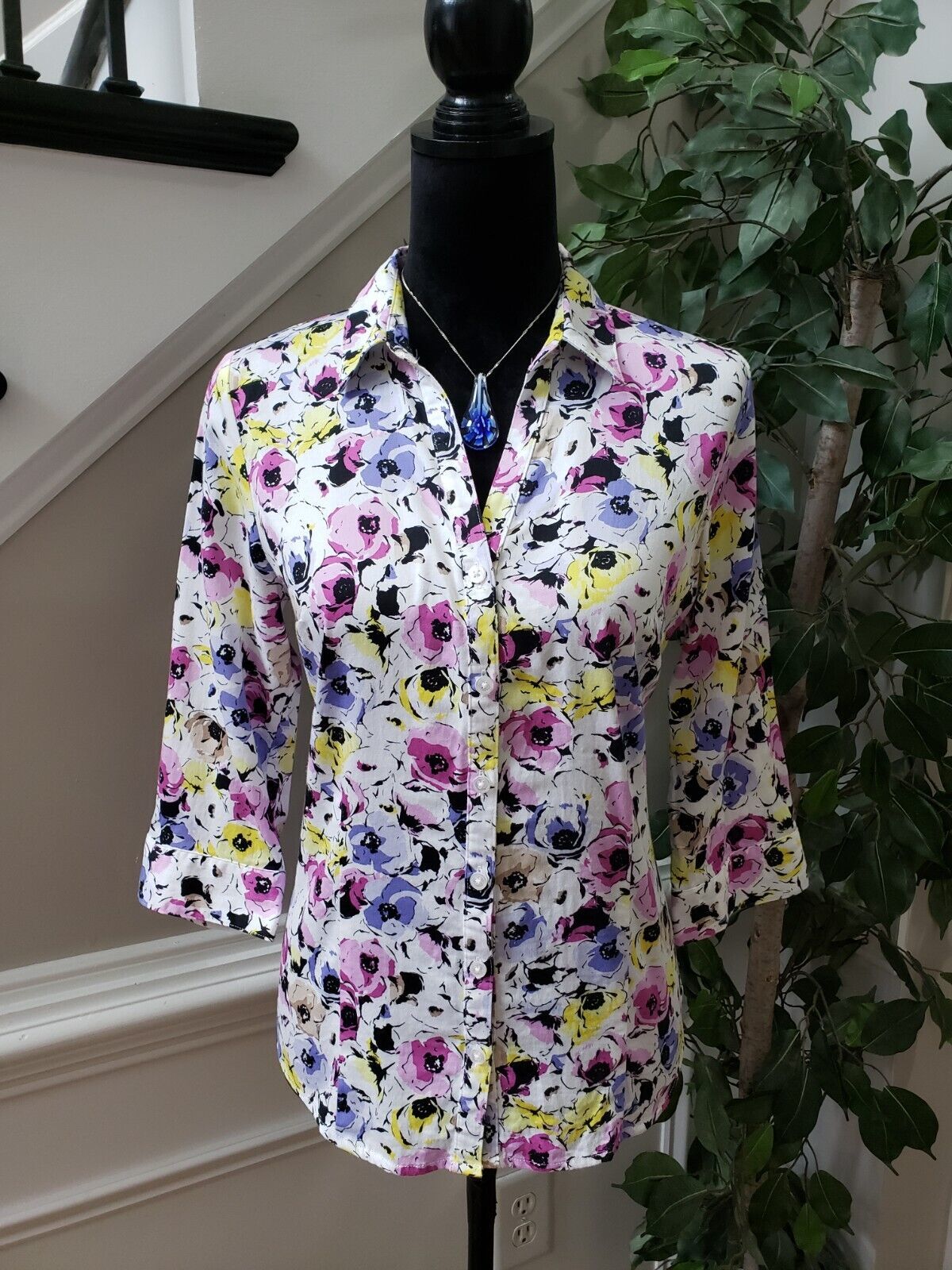 Dana Buchman Women's Multicolor Floral Collared Long Sleeve Button Down Shirt M