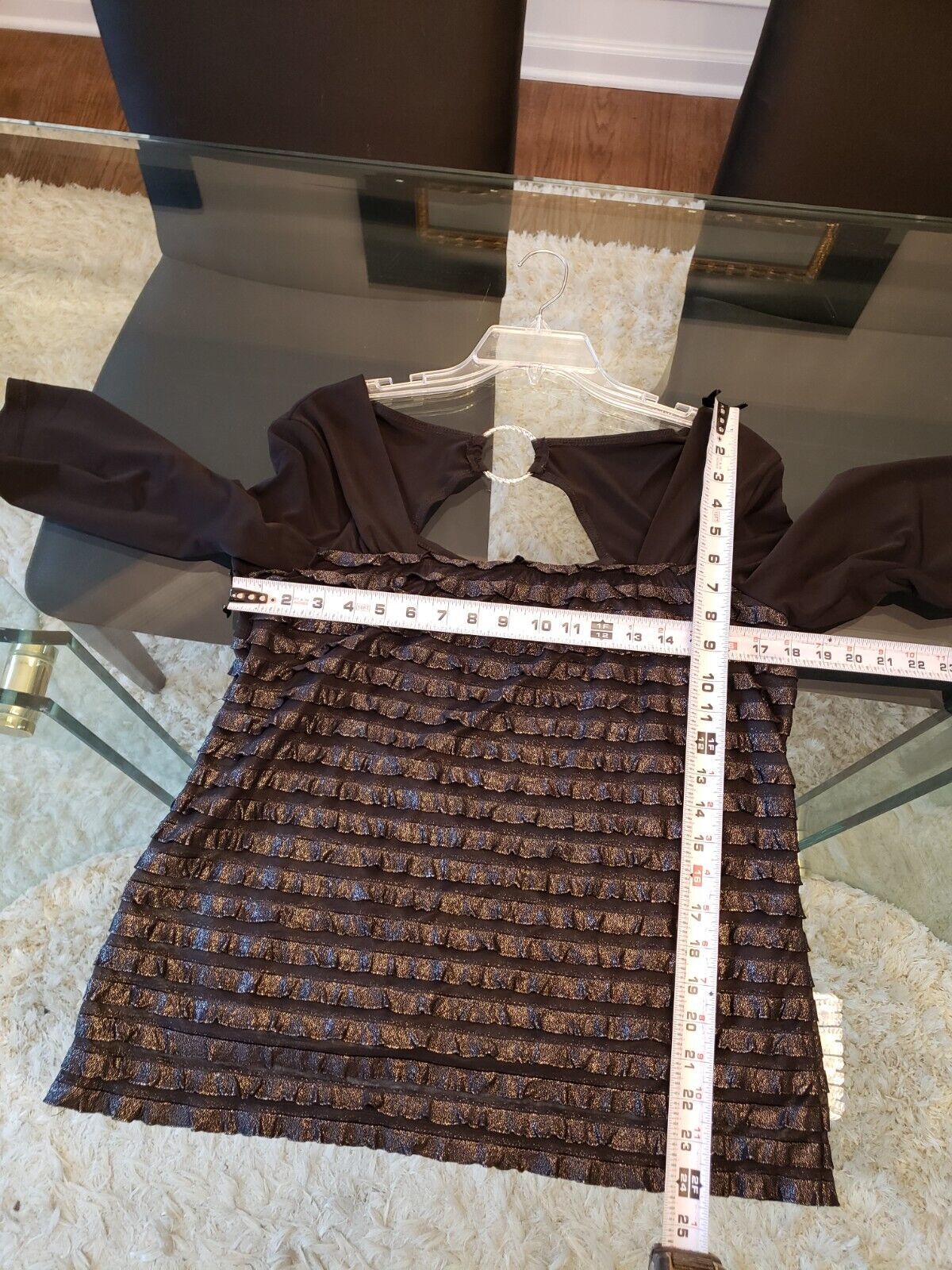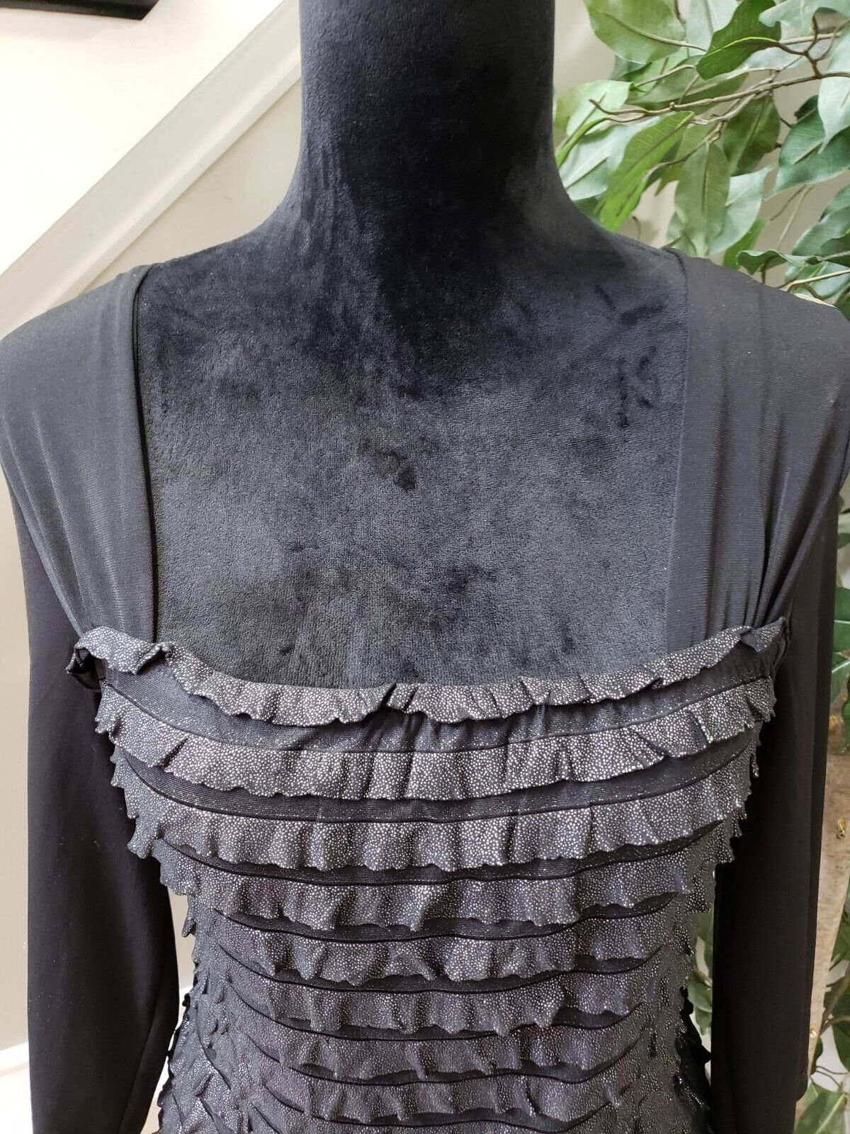 AGB Women's Black Gray Polyester Square Neck Long Sleeve Top Blouse Size Large.