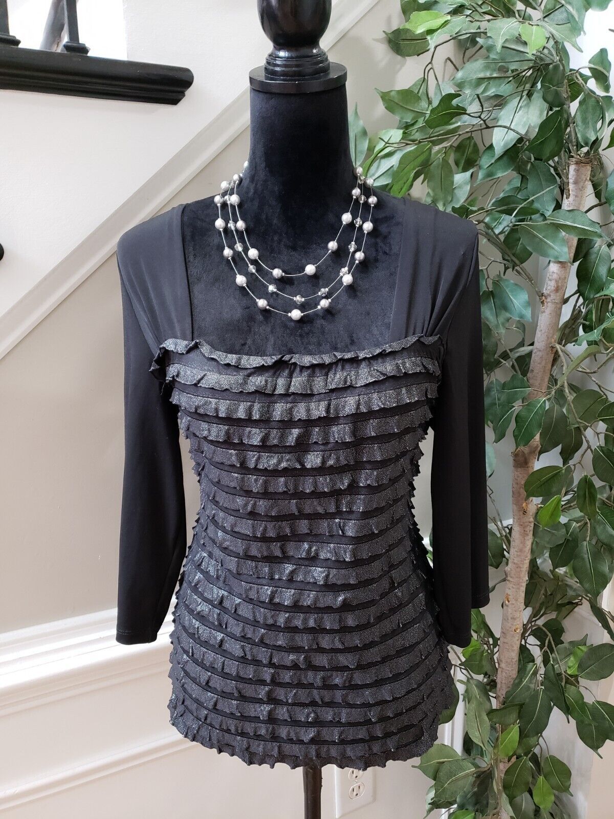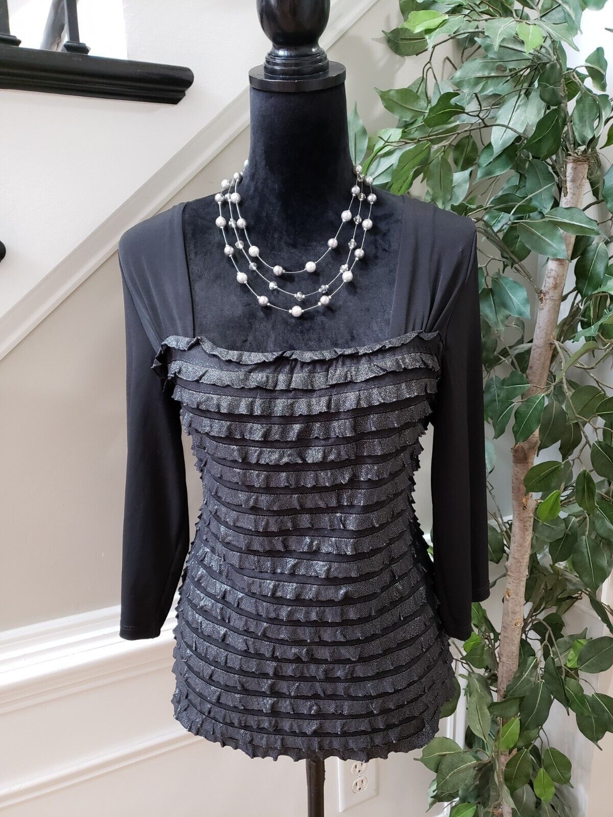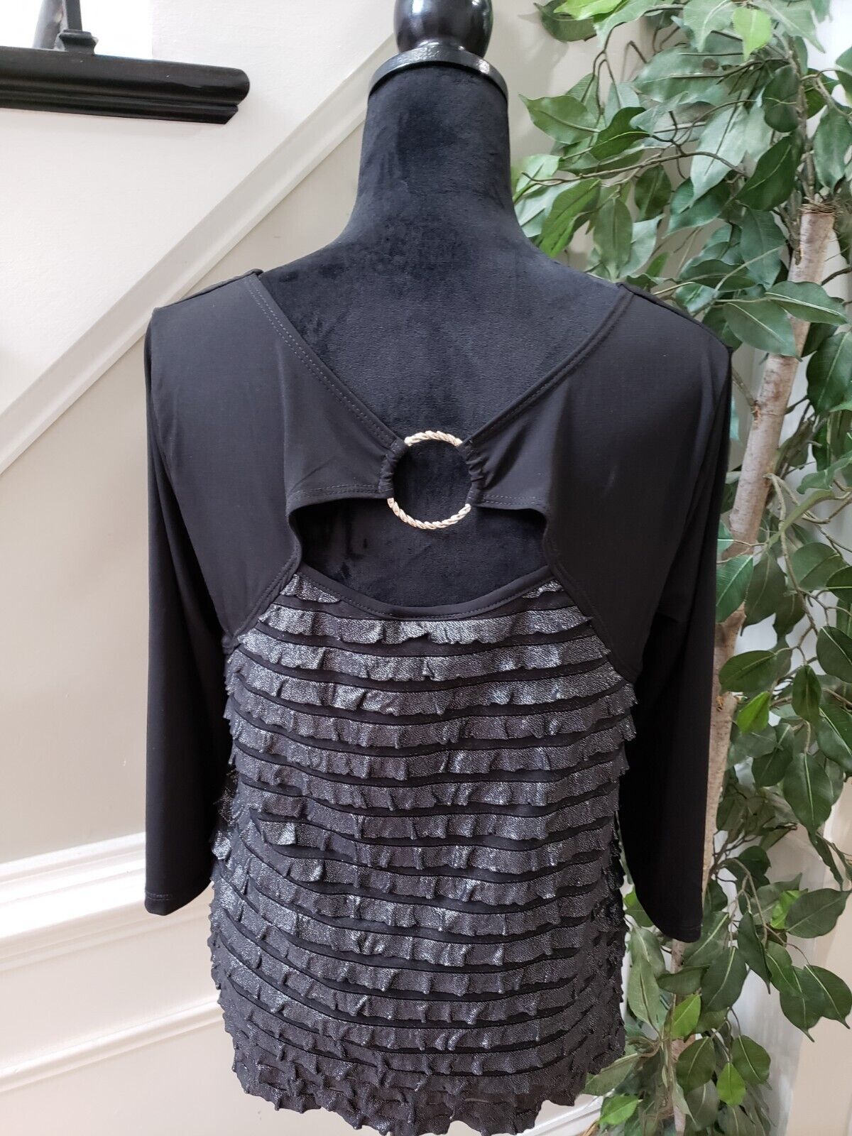 AGB Women's Black & Gray Polyester Square Neck Long Sleeve Top Blouse Size Large
