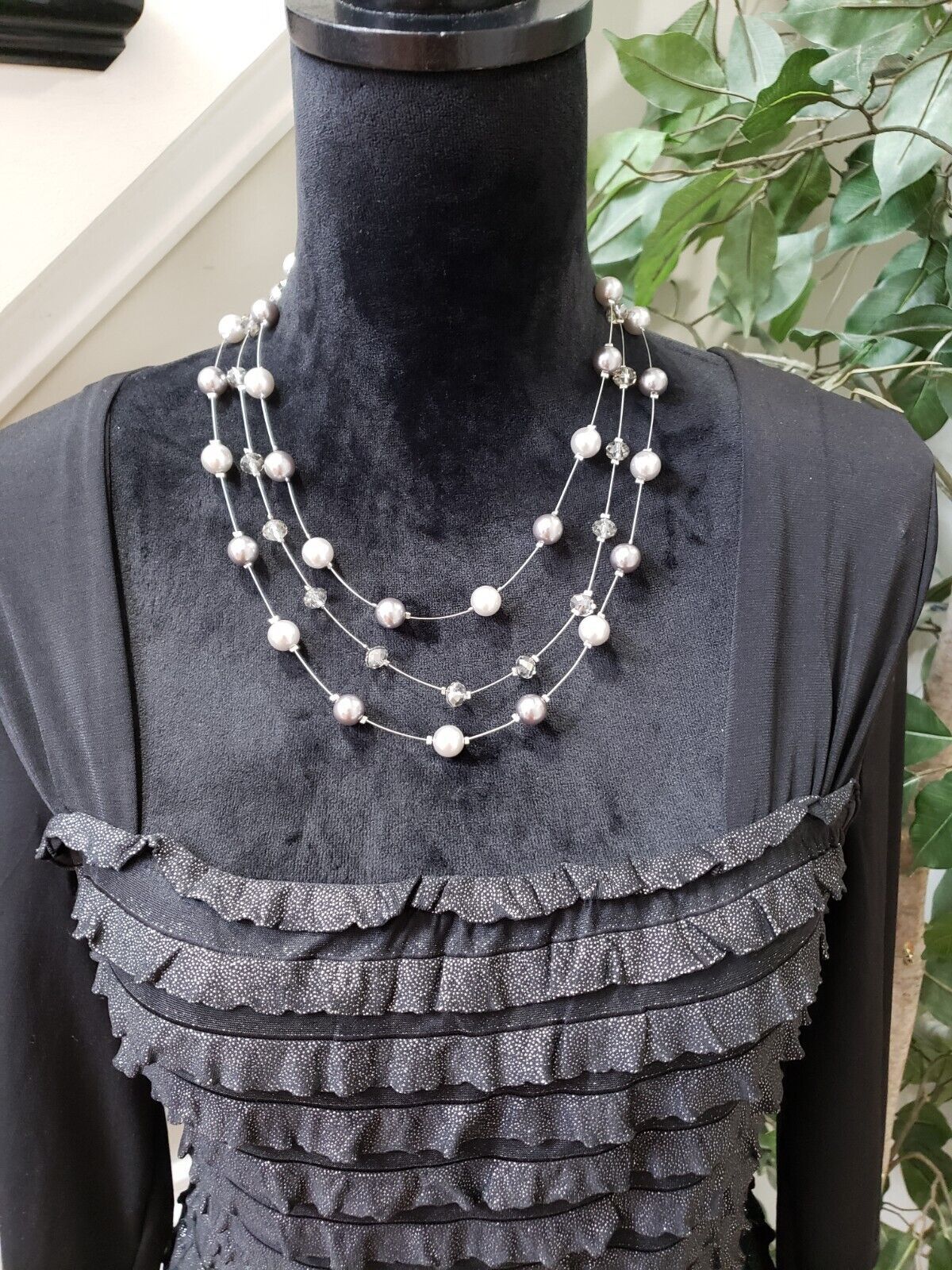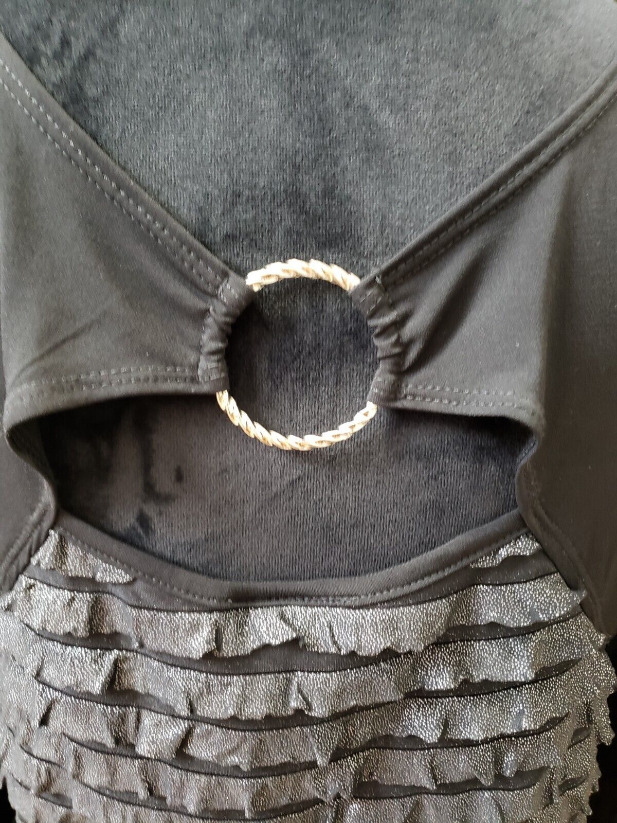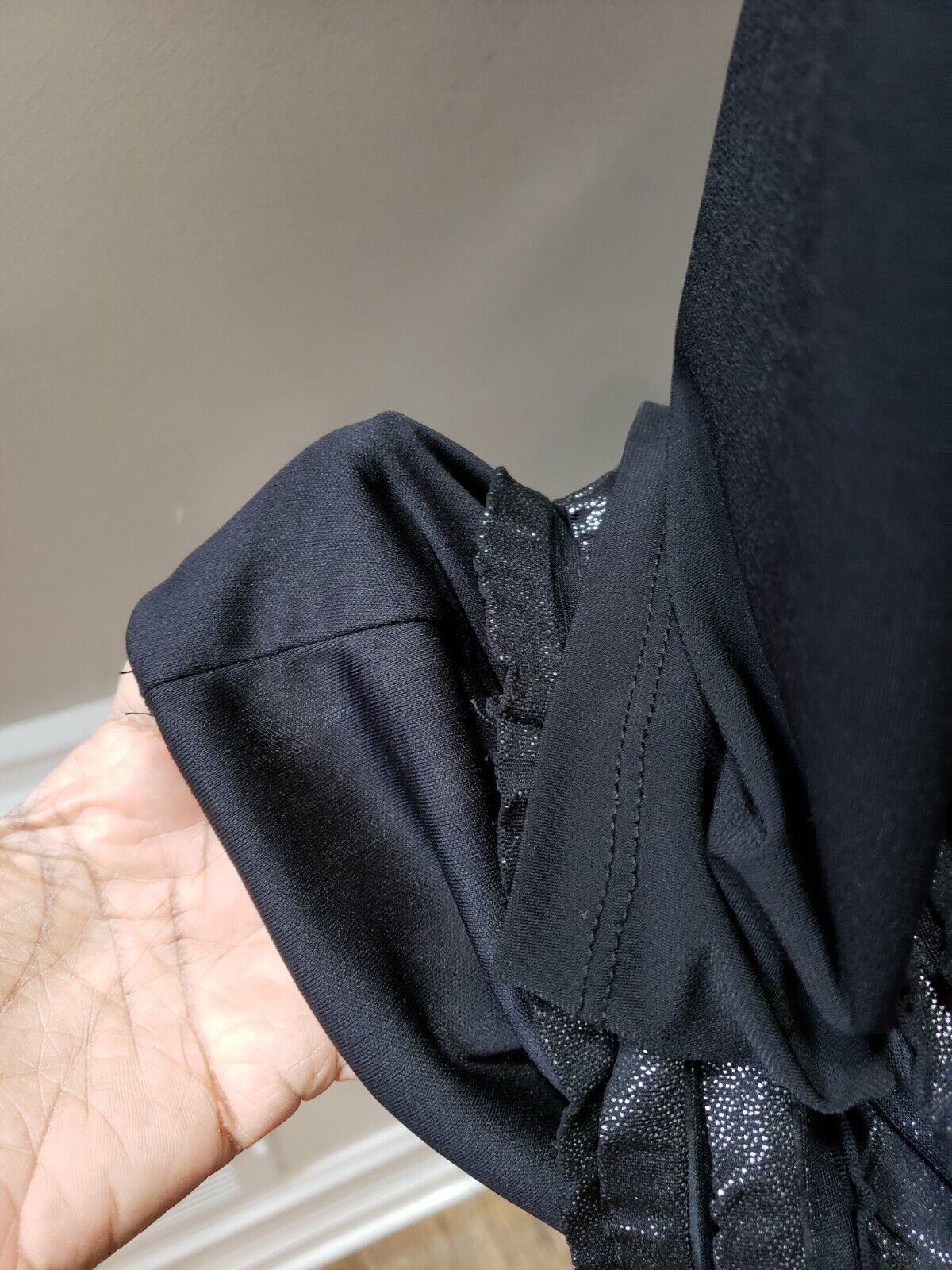 AGB Women's Black & Gray Polyester Square Neck Long Sleeve Top Blouse Size Large