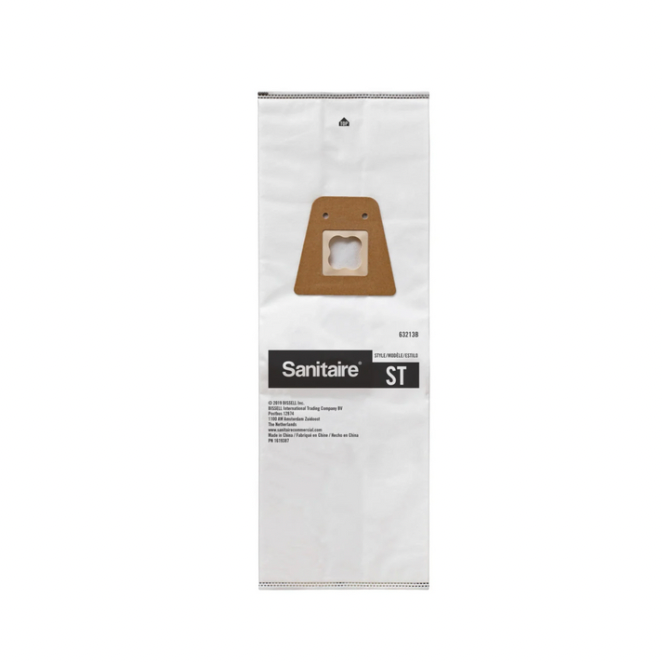 The Genuine Eureka Sanitaire Style ST Cloth HEPA Vacuum Cleaner Bags 63213B-10 OEM are high-quality replacement bags designed specifically for Sanitaire and Eureka vacuum cleaners. Made of durable white cloth material, these disposable bags are designed to effectively filter out allergens and improve the air quality in your home. With various sizes available in a pack, you can easily replace your old bags with these genuine OEM bags to maintain the efficiency of your vacuum cleaner. Perfect for keeping your home clean and healthy.