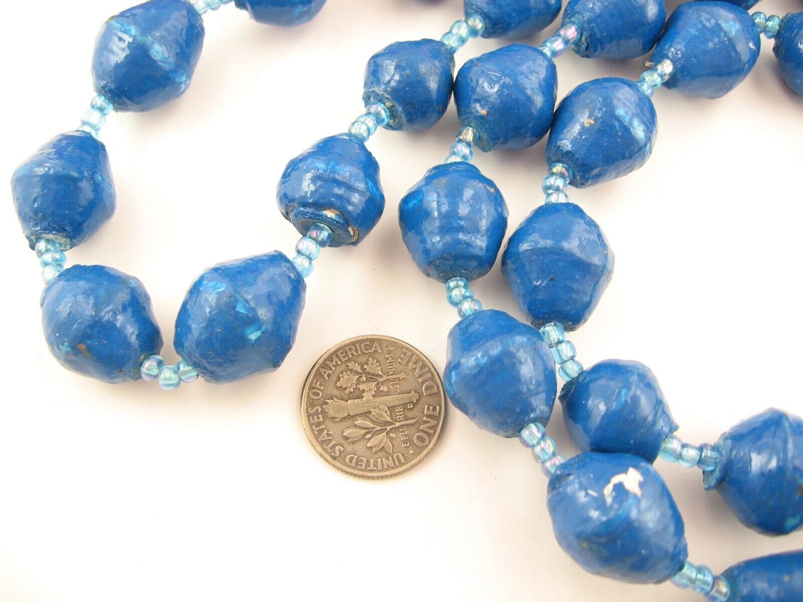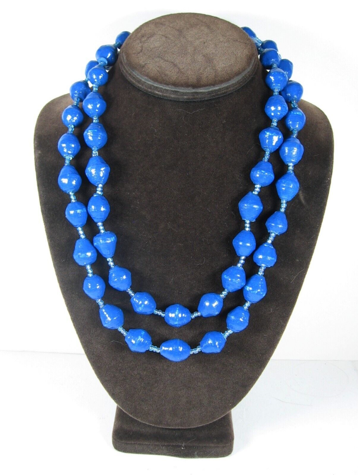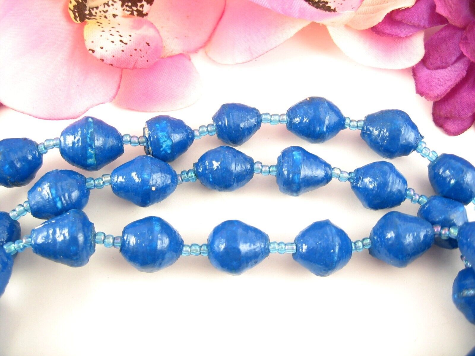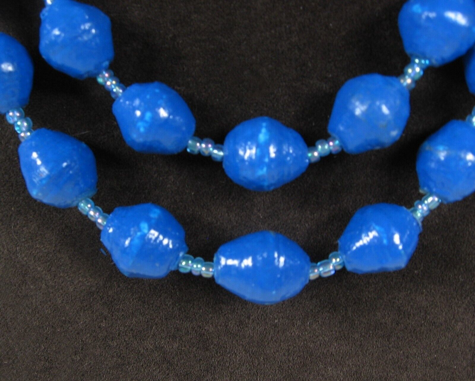 ODD BRIGHT BLUE BEADS Vintage Handcrafted Coated Bicone Beaded Necklace 44"