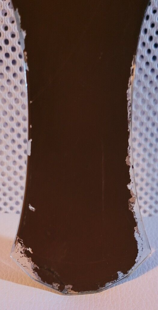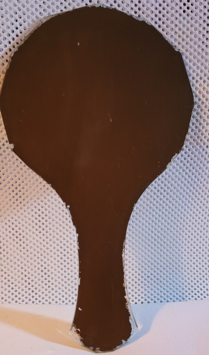 This handheld mirror is in good used vintage condition. It does show some signs of wear, as seen in the photos. It measures 10.5 inches long. 6 inches wide. It would make a nice addition to a collection or for decoration.