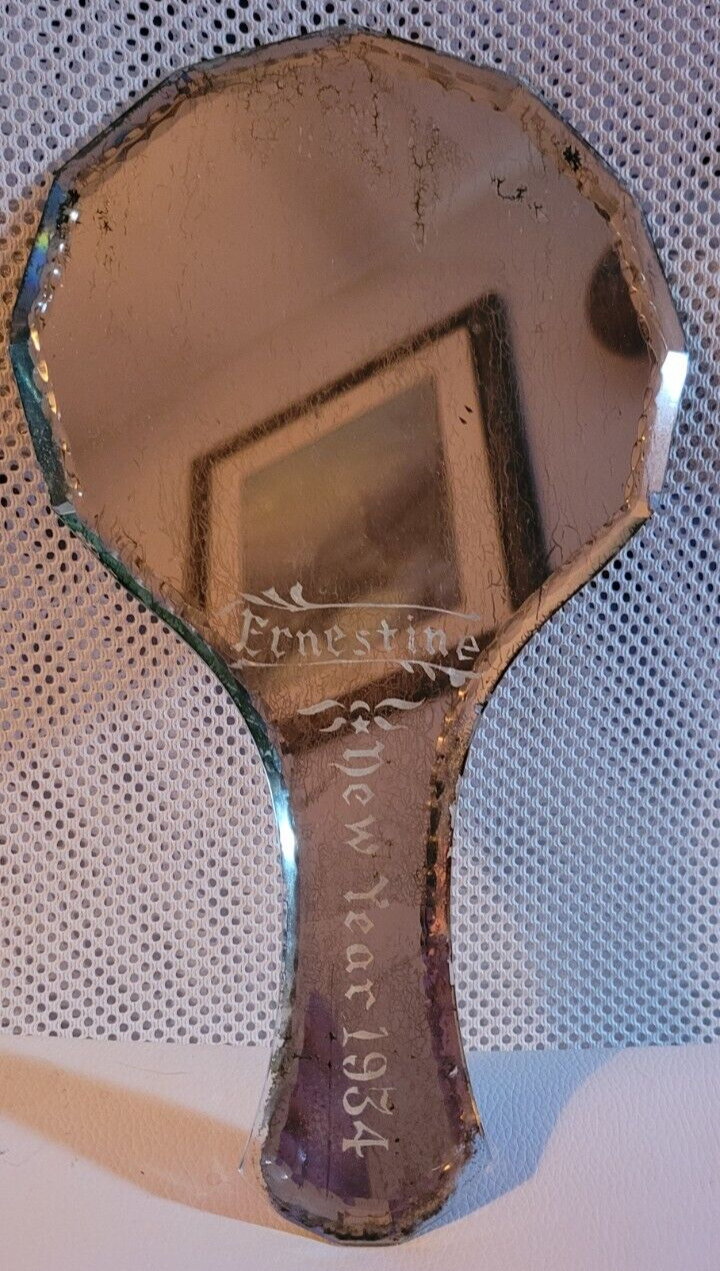 Vintage Handheld Mirror Ernestine New Year 1934 Vanity 10.5" Bathroom Collect