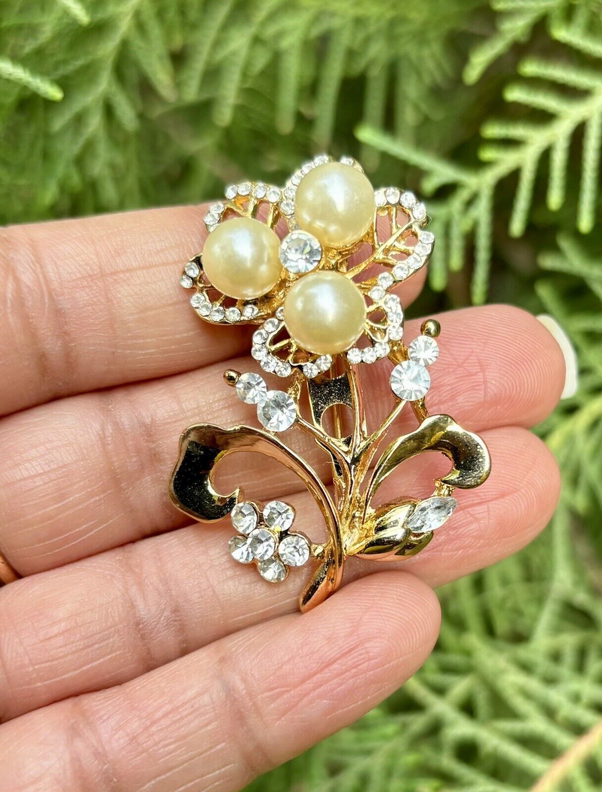 Spilla di sicurezza floreale perla e Cz, spilla, spilla sari, spilla hijab, spilla dupatta, lucidatura alta, design semplice elegante, gioielli da dichiarazione