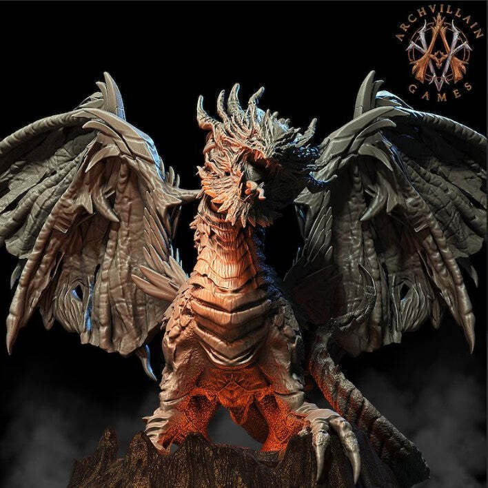 3D Printed Archvillain Games - Lava Dragon 28mm 32mm D&D