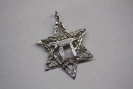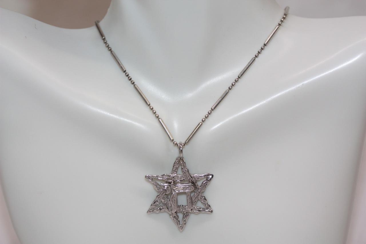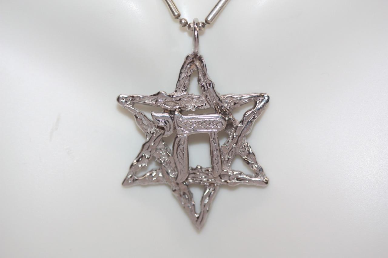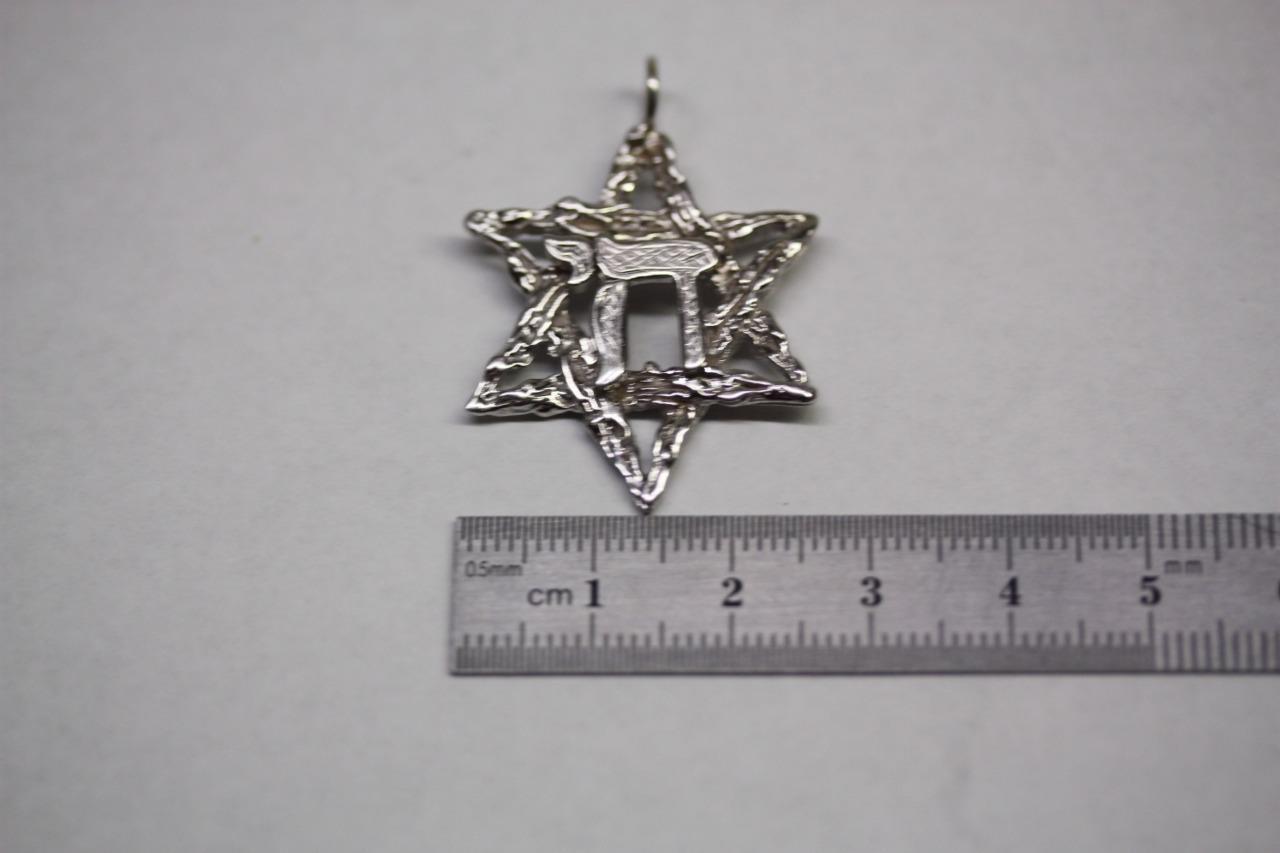 14K Yellow Gold (Rhodium Plated) Star of David Chai Hai Pendant Jewish Charm