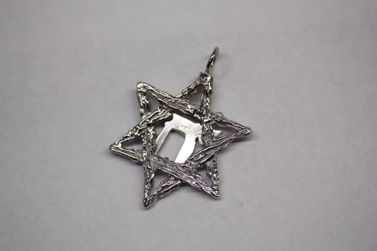 14K Yellow Gold (Rhodium Plated) Customized Textured Star of David with Chai Judaica Large Pendant Charm