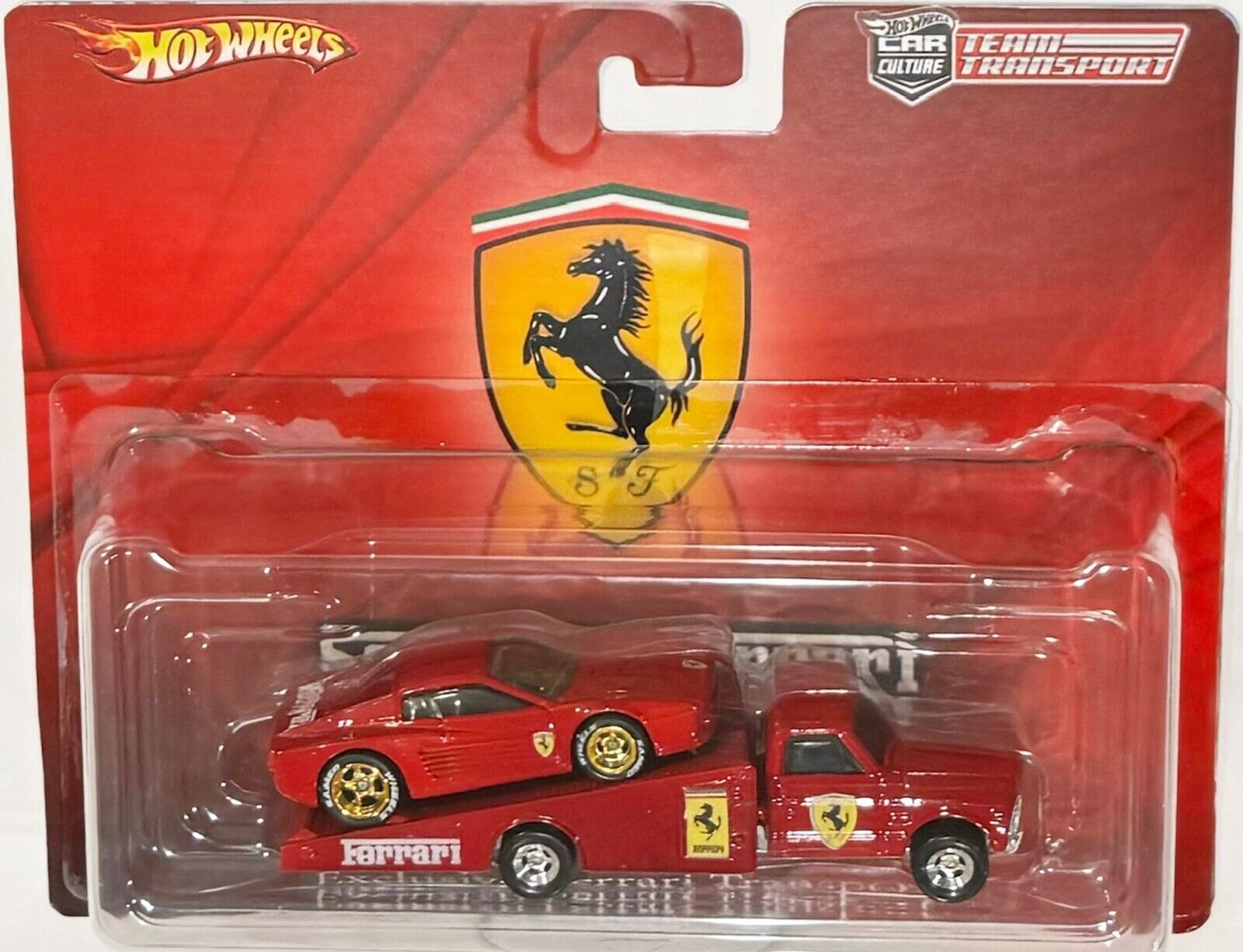Custom Hot Wheels Team Transport FERRARI TESTAROSSA on a Ramp Tow Truck w/ Real Riders Real Rider Rubber Wheels 1:64 Scale Collectible Die Cast Model Car.