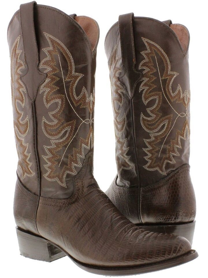 Mens Brown Cowboy Boots Leather Teju Lizard Pattern Western Round Toe Bota