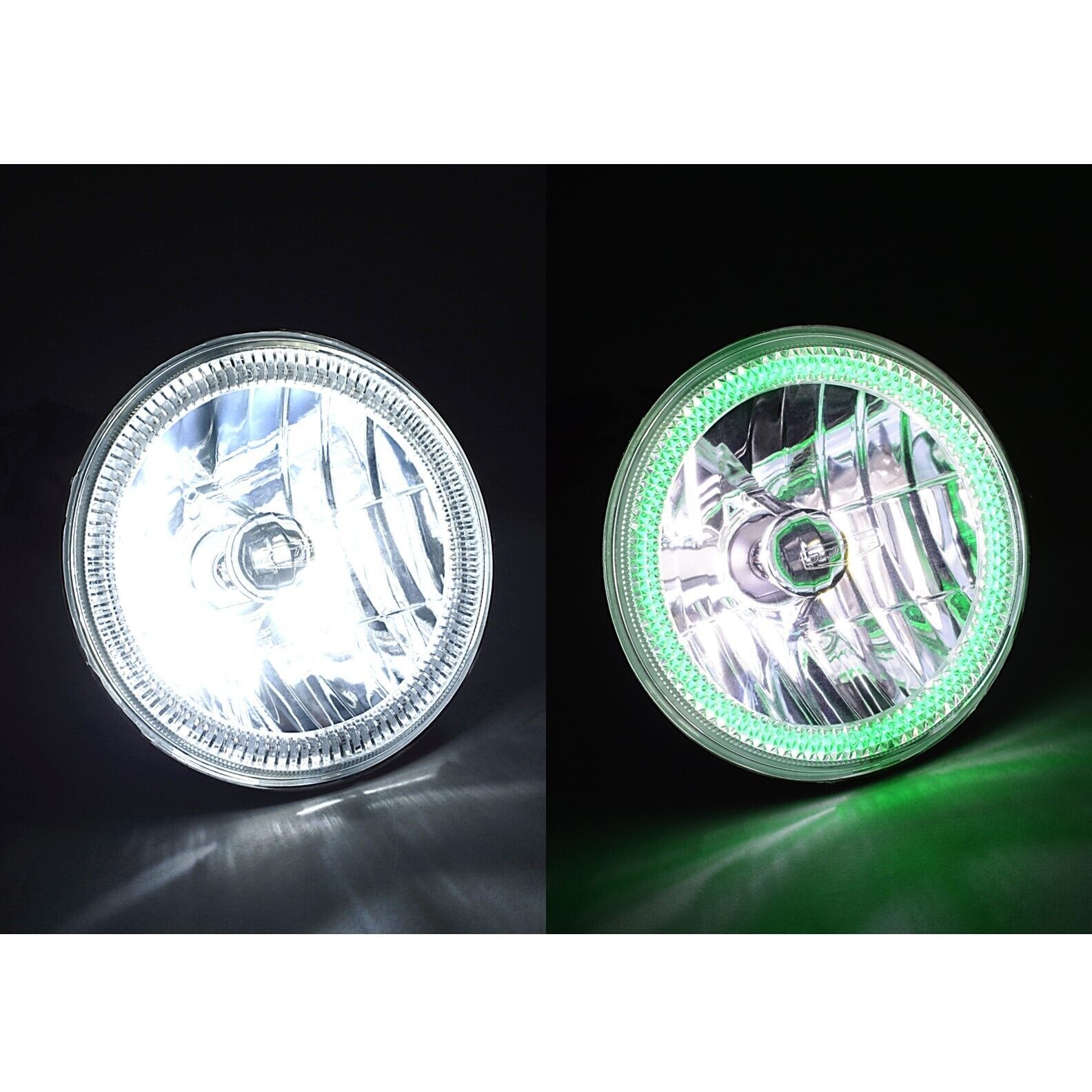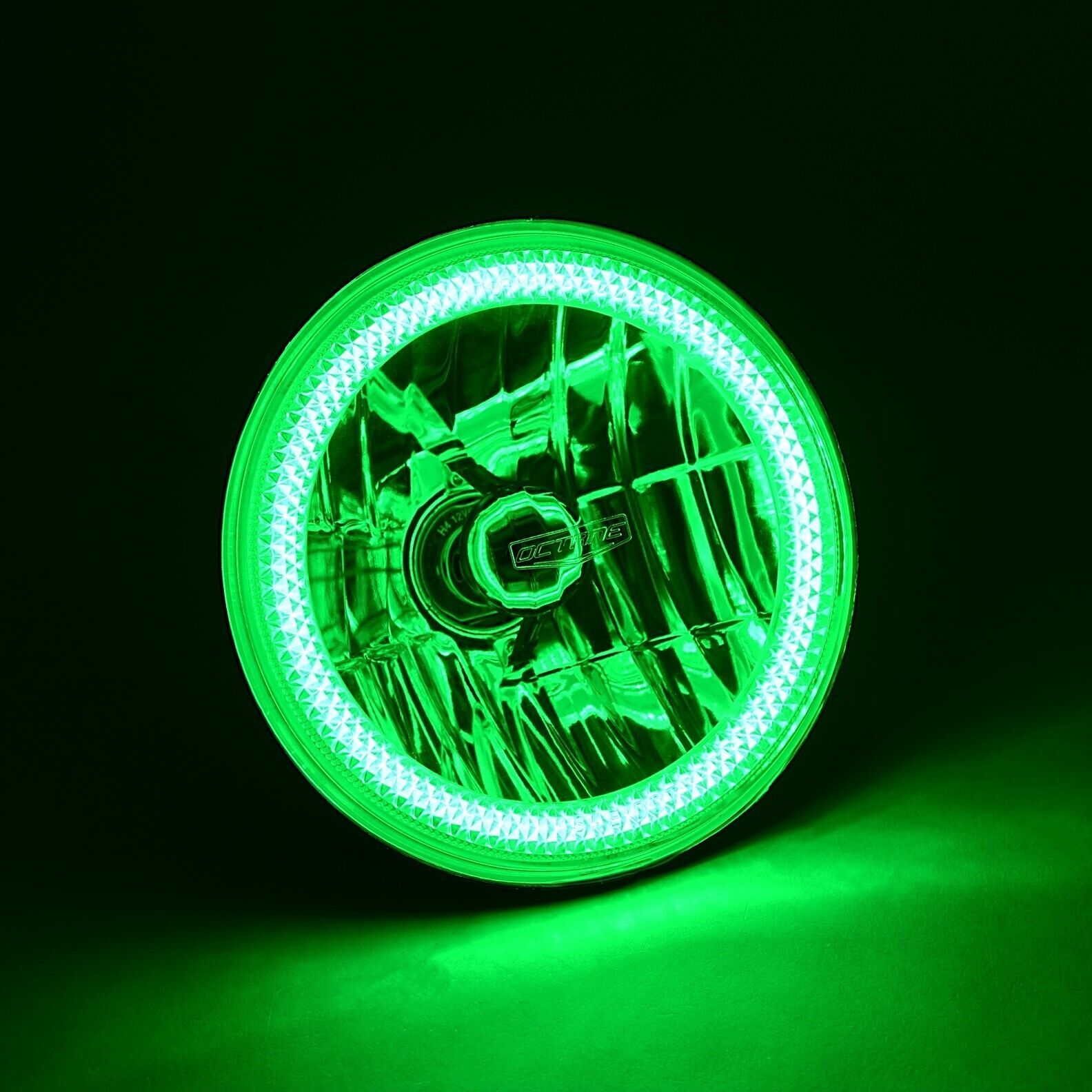 7" ROUND CRYSTAL HEADLIGHT WITH COB GREEN HALO RING