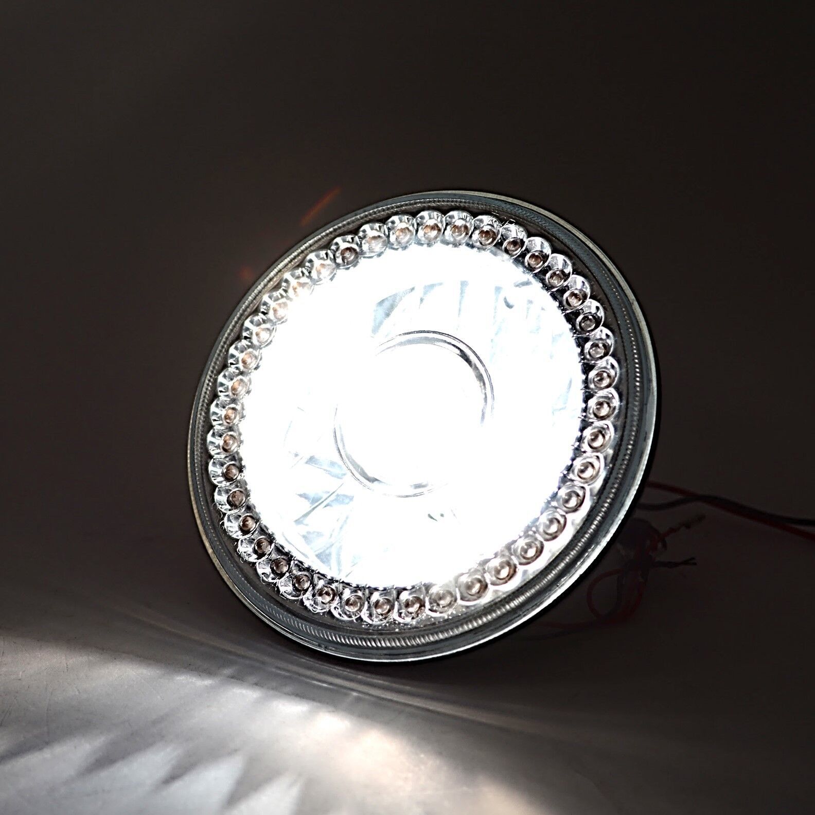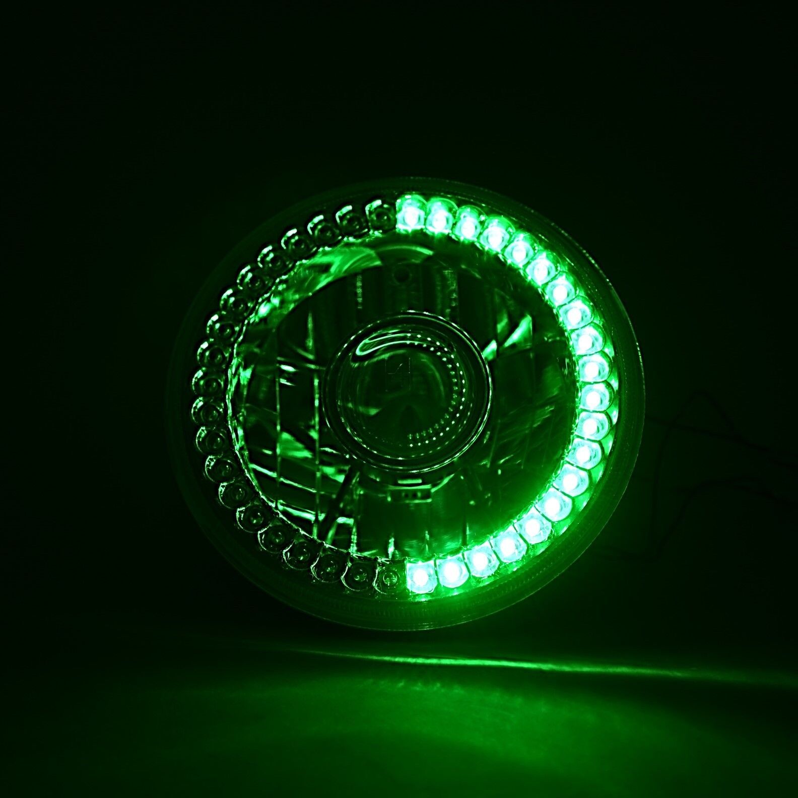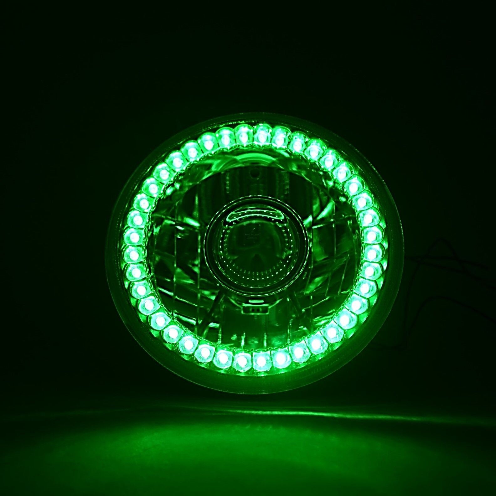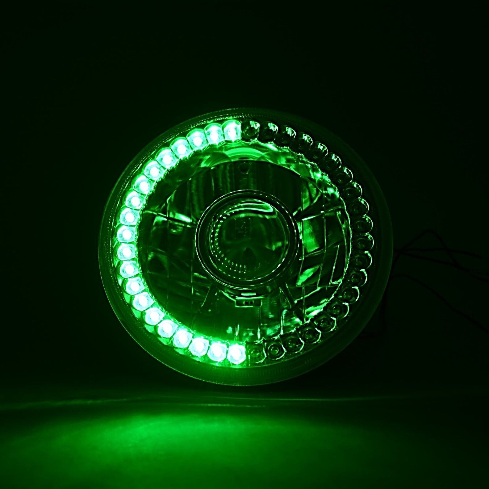 7" ROUND CRYSTAL HALOGEN PROJECTOR HEADLIGHT WITH A GREEN LED HALO RING
