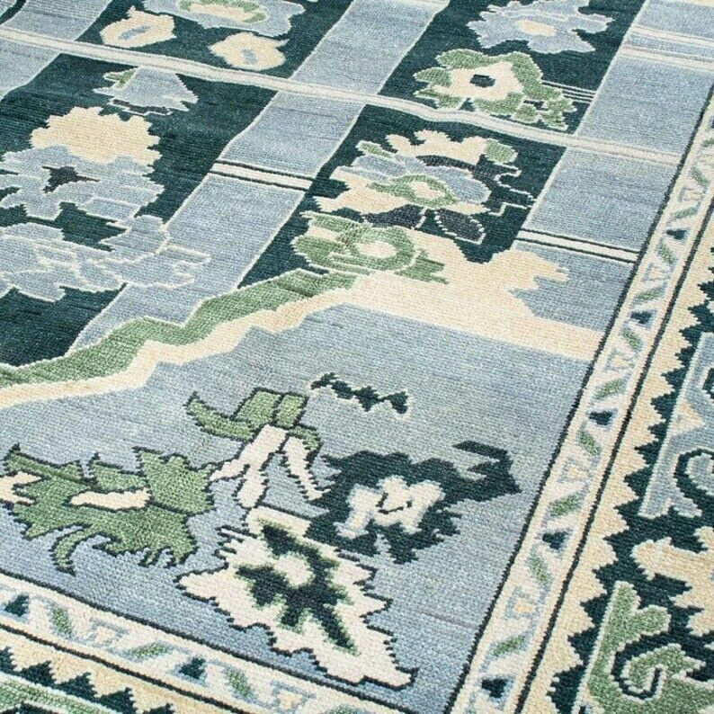 Hand knotted oushak rug is classic and this rug is no exception. This statement piece is perfect for a dramatic entryway in a lush emerald with this rug that add depth and dimension.oushak rug from wool and works well as a rug.